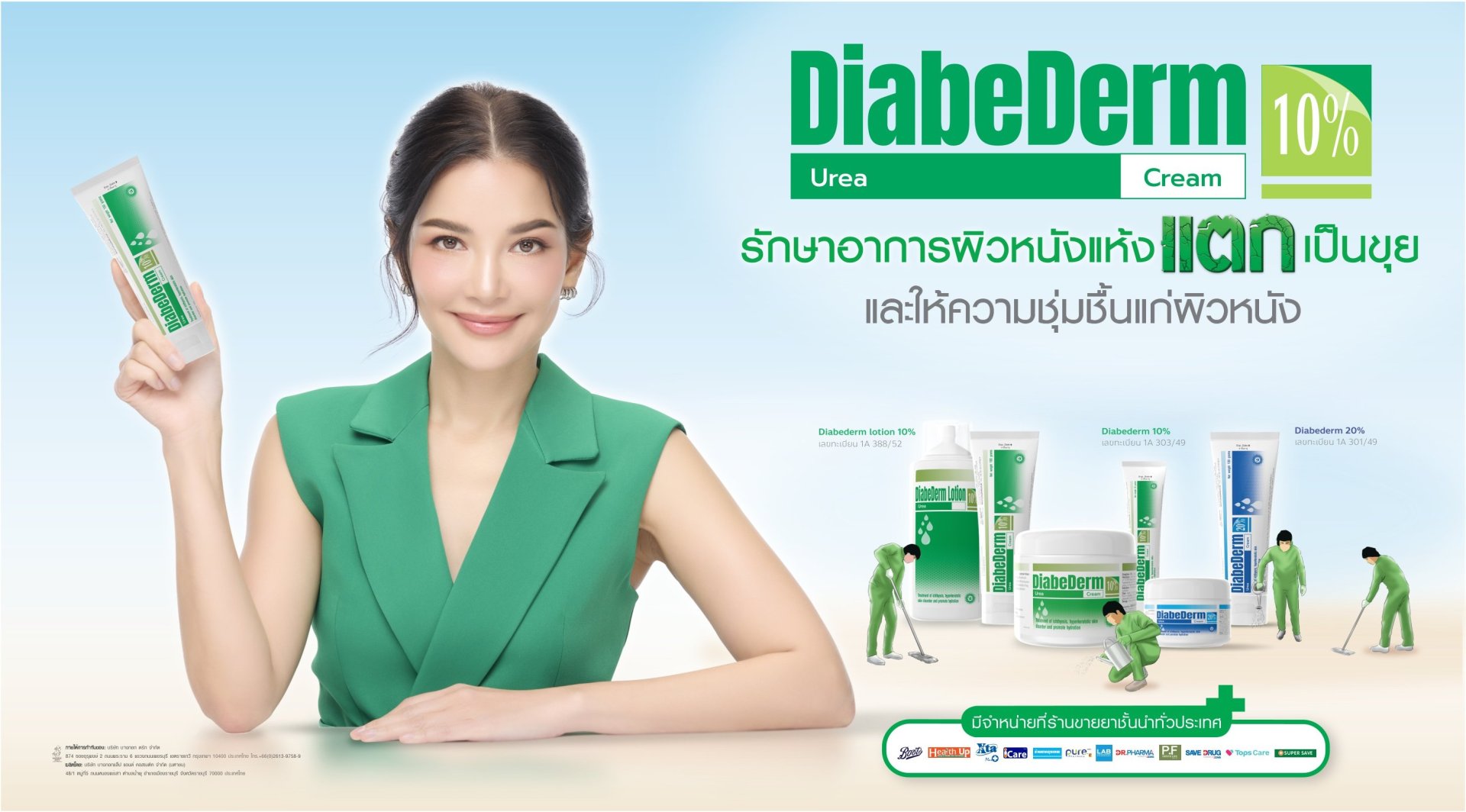 สำหรับ Diabederm 10% (เลขทะเบียนตำรับยา 1A 303/49) Diabederm 20% (เลขทะเบียนที่ 1A 301/49) และ Diabederm lotion 10% (เลขทะเบียนที่ 1A 388/52) เป็นยูเรียครีมที่มีคุณภาพและผ่านกระบวนการผลิตที่ได้มาตรฐาน โดยใช้ตัวยายูเรียนำเข้าจากประเทศเยอรมนี ซึ่งมีข้อบ่งใช้ในการรักษาอาการผิวหนังแห้ง แตกเป็นขุย ผิวหนังหนา และให้ความชุ่มชื้นแก่ผิวหนัง โดยเป็นผลิตภัณฑ์ที่วางจำหน่ายในโรงพยาบาล คลินิก และร้านขายยาทั่วประเทศ โดยบริษัทฯ ได้วางเป้าหมายยอดขาย Diabederm ในปี 2568 ให้เติบโตขึ้น 100% เมื่อเทียบกับปีที่ผ่านมา นอกจากนี้ ยังวางกลยุทธ์ขยายตลาดไปยังประเทศเพื่อนบ้าน ได้แก่ ลาว กัมพูชา และเมียนมาร์ ซึ่งจะใช้กลยุทธ์สื่อโฆษณาเดียวกัน โดยอิงจากพฤติกรรมการใช้งาน Social Media ที่คล้ายคลึงกับประเทศไทย อย่างไรก็ตาม แคมเปญสร้าง Brand Awareness ครั้งนี้ เป็นการสร้างรากฐานที่แข็งแกร่งเพื่อขับเคลื่อนแบรนด์ Diabederm นับเป็นการลงทุนสำคัญที่มุ่งเน้นการสร้างการรับรู้ในวงกว้างและยกระดับภาพลักษณ์ของแบรนด์ให้แข็งแกร่ง โดยใช้สื่อหลากหลายช่องทางทั้งออนไลน์และออฟไลน์ การสร้างแบรนด์ Diabederm ให้เป็นที่รู้จักในฐานะผลิตภัณฑ์ยาแผนปัจจุบันที่มีข้อบ่งใช้ในการรักษาอาการผิวหนังแห้ง แตกเป็นขุย ผิวหนังหนา และให้ความชุ่มชื้นแก่ผิวหนัง พร้อมทั้งมุ่งสู่การเป็นแบรนด์ที่เป็นที่รู้จักในระดับภูมิภาค