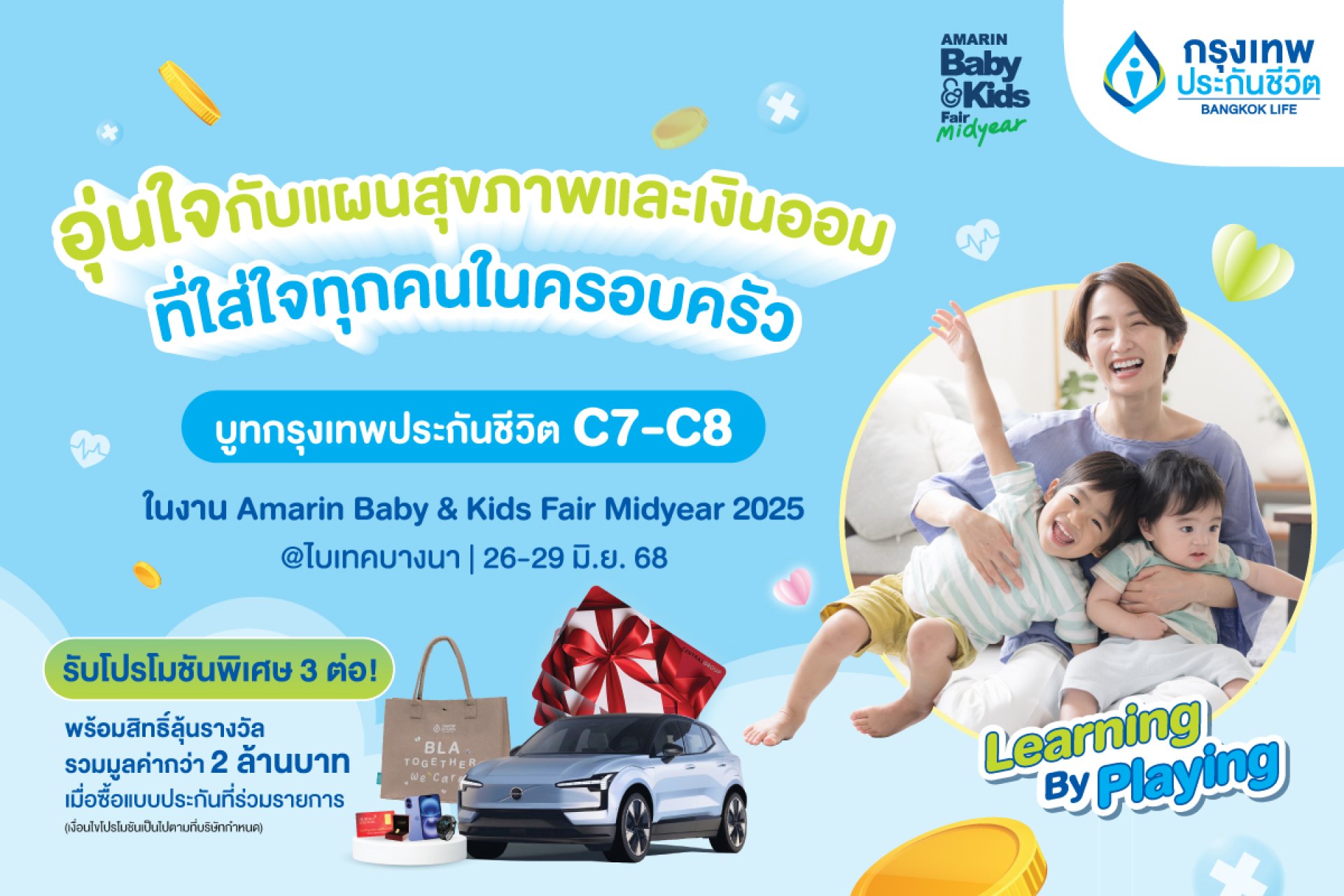 กรุงเทพประกันชีวิต ขอส่งมอบความ อุ่นใจ กับแผนสุขภาพและเงินออม ที่ ใส่ใจทุกคนในครอบครัว ในงาน แฟร์ที่คุณพ่อคุณแม่ห้ามพลาด Amarin Baby & Kids Fair Midyear 2025 เตรียมยกทัพแบบประกันดี ๆ ที่ออกแบบมาด้วยความใส่ใจ ไม่ว่าจะเป็น กรุงเทพ สมาร์ท คิดส์ แบบประกันสะสมทรัพย์ที่ซื้อ 1 ได้ถึง 4 มั่นใจกับผลตอบแทนที่แน่นอน พร้อมความคุ้มครองด้านสุขภาพ ตอบโจทย์ทุกเป้าหมายในอนาคตเพื่อลูกน้อย กรุงเทพ สุดคุ้ม แผนการออมที่คุ้มค่า และหลากหลายแผนคุ้มครองที่มอบความอุ่นใจในทุกช่วงเวลาสำหรับครอบครัว ระหว่างวันที่ 26 29 มิถุนายน 2568 ที่บูท C7-C8 ฮอลล์ 104 ศูนย์แสดงสินค้าและนิทรรศการ ไบเทคบางนา ภายในงานพบกับกิจกรรมสร้างสรรค์เพื่อพัฒนาการเรียนรู้ของลูกน้อย และรับฟังสาระดี ๆ กับเวทีเสวนาห้องเรียน พ่อแม่ ในวันเสาร์ที่ 28 มิถุนายน เวลา 13.30 น. โดย ผศ.ดร.ปนัดดา ธนเศรษฐกร ผู้เชี่ยวชาญด้านเทคนิคการสร้างวินัยเชิงบวกและการส่งเสริมทักษะสมอง EF สถาบันแห่งชาติเพื่อการพัฒนาเด็กและครอบครัว มหาวิทยาลัยมหิดล พร้อมผู้เชี่ยวชาญจากกรุงเทพประกันชีวิตที่จะมาแนะนำการวางแผนการเงินเพื่ออนาคตลูก และโปรโมชันสุดพิเศษมากมาย
