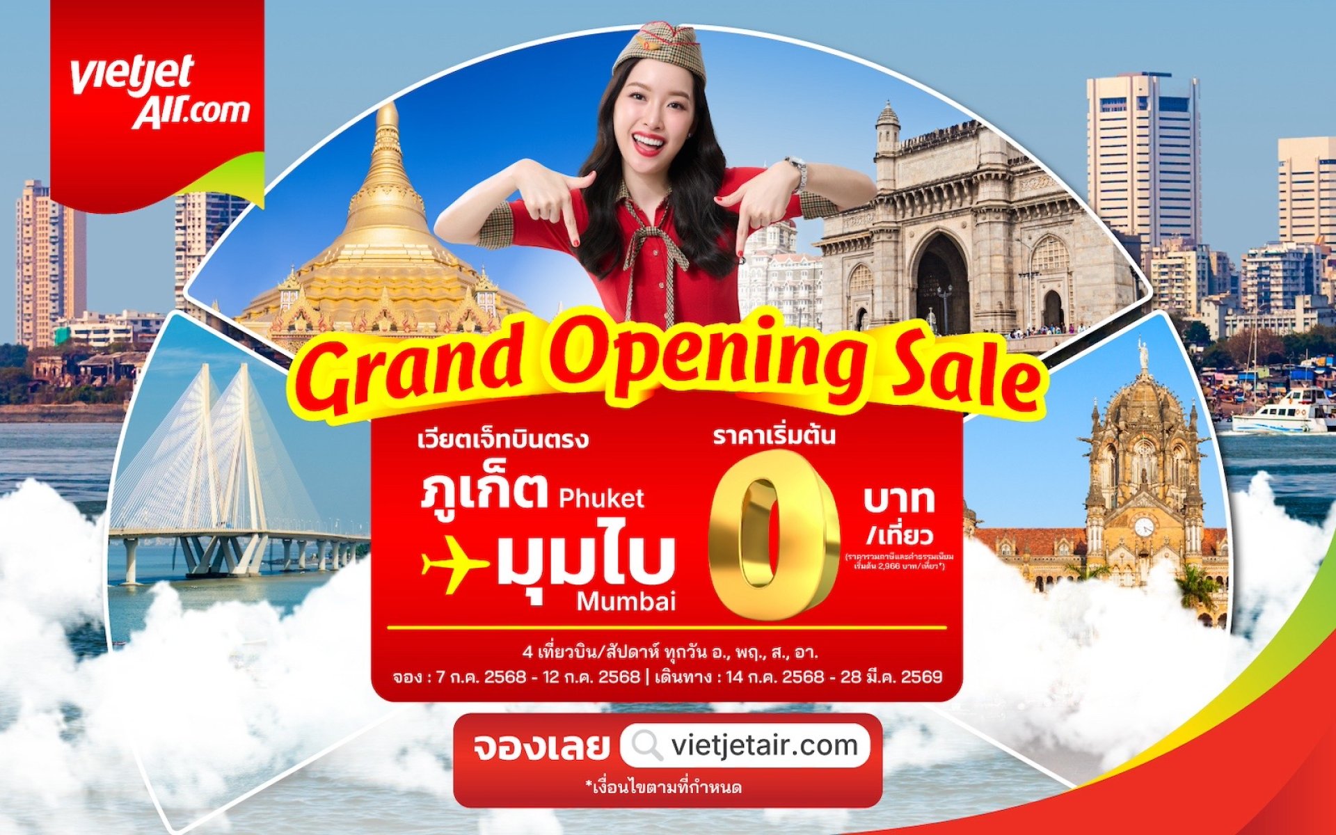 เวียตเจ็ทไทยแลนด์เปิดบินตรง ภูเก็ต มุมไบ ตั๋วโปรฯ เริ่มต้น 0 บาท