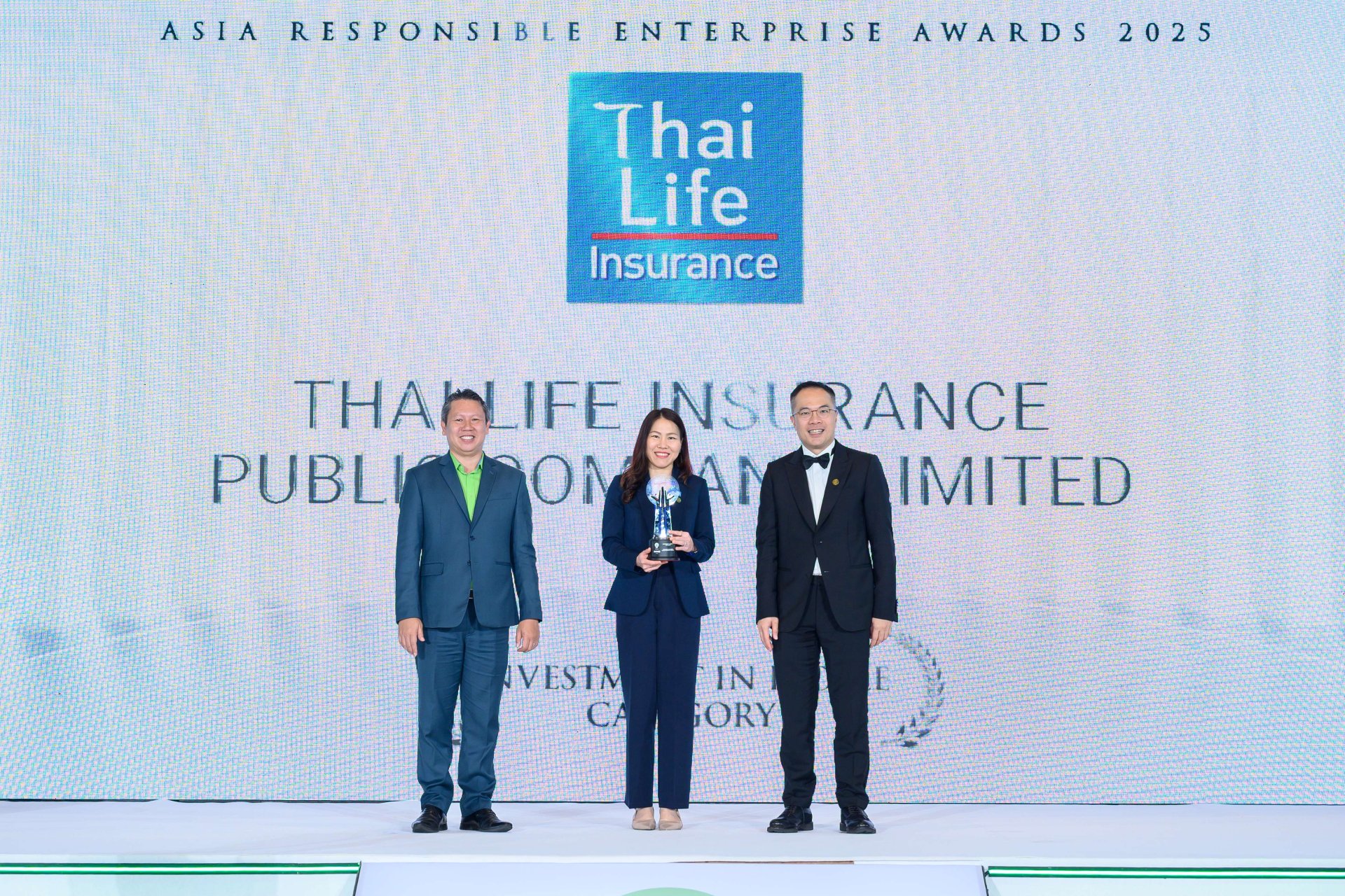 นางสาวฐิติมา เลี้ยงพาณิชย์ ผู้อำนวยการฝ่าย กลุ่มสื่อสารองค์กร บริษัท ไทยประกันชีวิต จำกัด (มหาชน) รับรางวัล Asia Responsible Enterprise Awards (AREA) 2025 ต่อเนื่องเป็นปีที่ 12 ในสาขา Investment in People จากโครงการ ไทยประกันชีวิต เสริมโอกาส สร้างอาชีพ ซึ่งเป็นโครงการที่บริษัทมุ่งมั่นสร้างคุณค่าร่วม (Creating Shared Value: CSV) ด้วยการยกระดับคุณภาพชีวิตให้กับคนในชุมชนอย่างเป็นรูปธรรม ในด้านการส่งเสริมอาชีพที่มั่นคง และการบริหารจัดการการเงิน ซึ่งเป็นสองหัวใจสำคัญที่จะสร้างความมั่นคงในชีวิตอย่างยั่งยืน