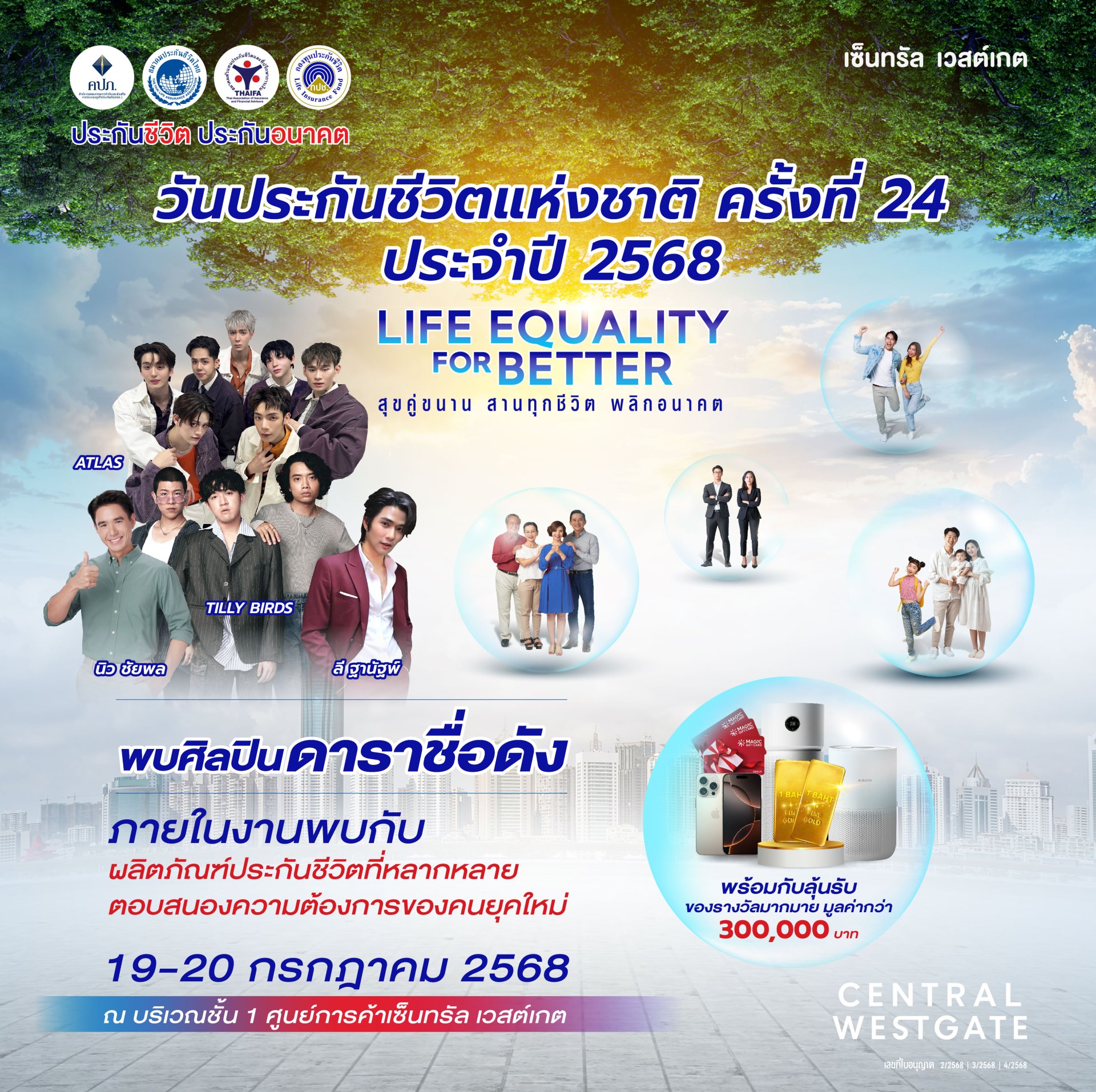 มร.โทมัส ชาร์ลส วิลสัน กรรมการบริหาร สมาคมประกันชีวิตไทย ในฐานะประธานคณะกรรมการจัดงานวันประกันชีวิตแห่งชาติครั้งที่ 24 ประจำปี 2568 เปิดเผยว่า การสร้างความมั่นคงของครอบครัว โดยเฉพาะอย่างยิ่ง เรื่องเศรษฐกิจครัวเรือนที่จะช่วยให้ชีวิตมีความมั่นคง มีความสุข การประกันชีวิตก็คือหนึ่งในเครื่องมือที่จะช่วยบริหารความเสี่ยงภัยทางการเงิน ตลอดจนเป็นทางเลือกของการออมเงินอย่างมีเป้าหมายและต้องมีวินัยในการออมจะทำให้คุณมีความมั่นคงทางการเงินเพิ่มมากขึ้น ทั้งนี้ ในปี 2567 อัตราการถือครองกรมธรรม์ประกันชีวิตของคนไทย อยู่ที่ประมาณ 38 39% ของประชากร กล่าวคือ มีประชาชนราว 4 ใน 10 คนที่ถือกรมธรรม์ประกันชีวิตเท่านั้น แสดงว่ายังมีประชาชนอีกจำนวนมากที่ยังไม่มีความคุ้มครองและบางส่วนก็ยังไม่รู้ว่าการประกันชีวิตเป็นเครื่องมือบริหารความเสี่ยงภัยที่สามารถออมเงินได้ด้วย ดังนั้นเพื่อให้คนไทยมีสุขภาพทางการเงินที่ดี ชีวิตมีหลักประกันความมั่นคง ภาคธุรกิจประกันชีวิตจึงได้จัดงานวันประกันชีวิตแห่งชาติอย่างต่อเนื่องทุกปี ซึ่งปี 2568 นี้เป็นครั้งที่ 24 ภายใต้แนวความคิด สุขคู่ขนาน สานทุกชีวิต พลิกอนาคต ซึ่งจัดขึ้นระหว่างวันที่ 19 - 20 กรกฎาคม 2568 บริเวณลานโปรโมชั่น ชั้น 1 โซน A B และC ศูนย์การค้าเซ็นทรัล เวสต์เกต เพื่อเป็นช่องทางให้ประชาชนทุกกลุ่มได้เข้าถึงข้อมูลของกรมธรรม์ประกันชีวิตที่หลากหลายของบริษัทประกันชีวิตที่ร่วมออกบูธภายในงาน รวมทั้งหน่วยงานกำกับและภาคเอกชน ที่รวมตัวกันเพื่อมาเผยแพร่ความรู้เกี่ยวกับคุณประโยชน์ของการทำประกันชีวิต โดยเน้นสร้างการรับรู้และกระตุ้นให้คนไทยตระหนักถึงความสำคัญของการวางแผนทางการเงินกับเครื่องมือบริหารความเสี่ยงด้วยการประกันชีวิต งานดังกล่าวจึงถือเป็นโอกาสทองของประชาชนที่กำลังให้ความสนใจเกี่ยวกับเรื่องของการประกันชีวิต และกำลังมองหาแหล่งเงินออมหรือสะสมทรัพย์ รวมถึงการลดหย่อนภาษี ซึ่งสามารถเลือกสรรแบบประกันชีวิตที่สอดคล้องกับความต้องการและความสามารถในการชำระเบี้ยประกันภัยของตนเองได้ในงานนี้ พร้อมรับของที่ระลึกจากบริษัทประกันชีวิตที่ท่านสนใจ สำหรับผู้ที่ซื้อผลิตภัณฑ์ประกันชีวิตภายในงาน ตั้งแต่ 5,000 บาทขึ้นไป จะมีสิทธิ์รับคูปองชิงโชค ลุ้นรางวัลมูลค่ากว่า 3 แสนบาท รางวัลแจ็คพอตทองคำแท่งหนัก 2 บาท และอื่นๆ อีกมากมาย อาทิ โทรศัพท์ iPhone 16 เครื่องฟอกอากาศ Xiaomi Smart Air Purifier 4 Compact เครื่องฟอกอากาศ Xiaomi Smart Air Purifier Elite และบัตรกำนัลเซ็นทรัล เป็นต้น นอกจากนี้ยังมีกิจกรรมให้ร่วมสนุก เช่น การคัดแยก