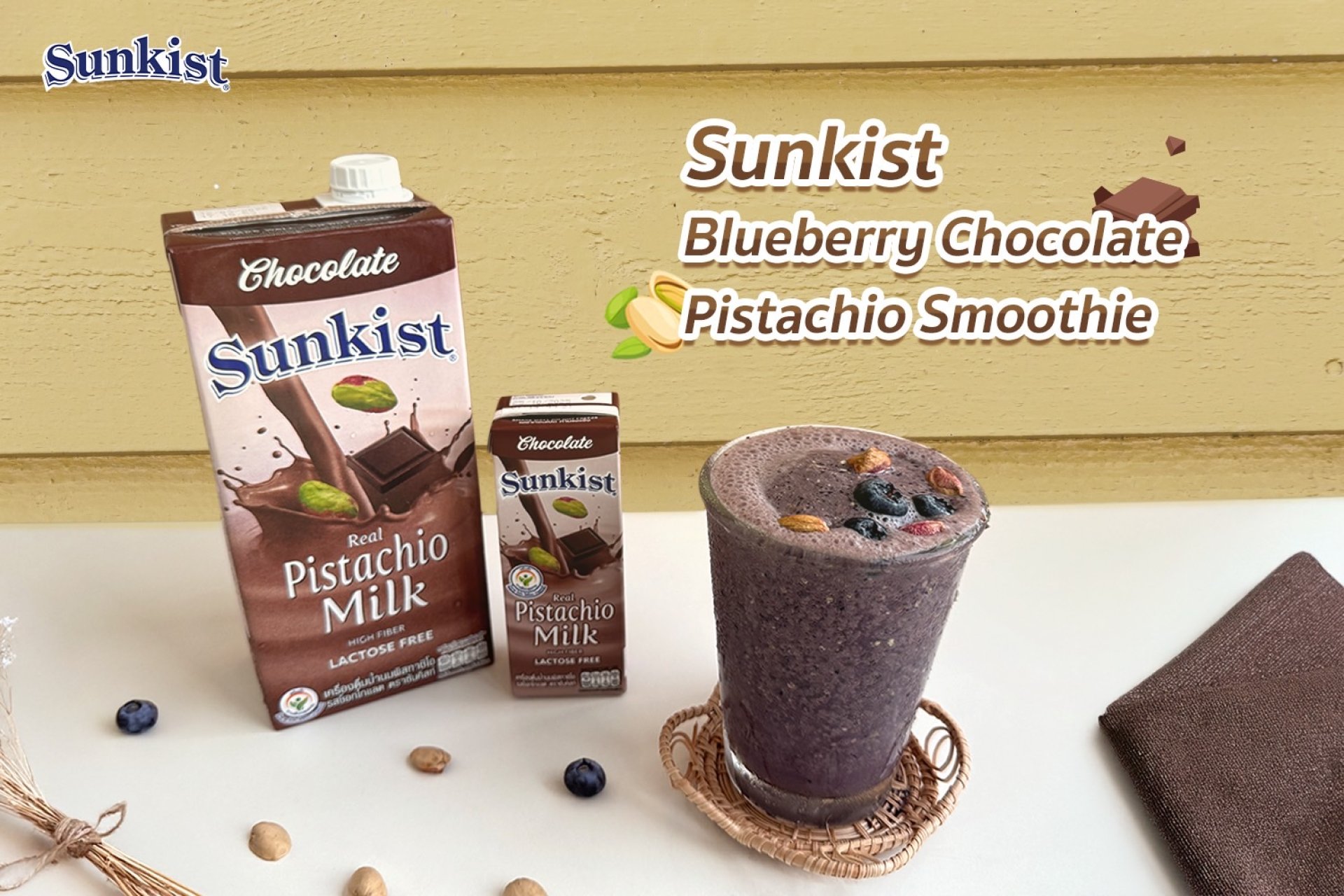 โดยในวันนี้ แบรนด์ ซันคิสท์ เครื่องดื่มน้ำนมพิสทาชิโอ มีสูตรการทำ เครื่องดื่ม Sunkist Blueberry Chocolate Pistachio Smoothie ที่ทำง่ายได้ประโยชน์ต่อสุขภาพ มีส่วนผสมและวิธีการทำดังนี้