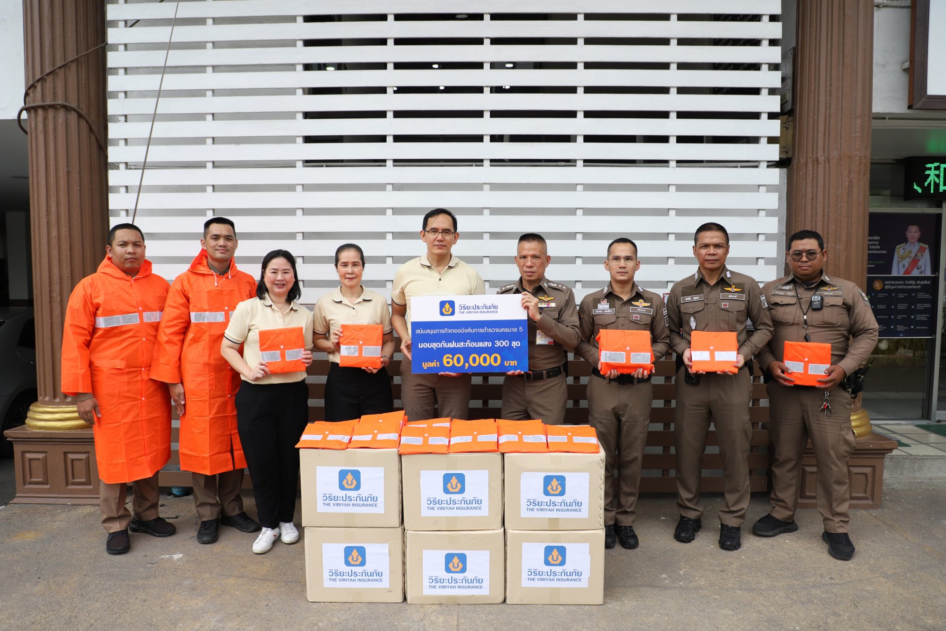 วิริยะประกันภัย สนับสนุนเสื้อกันฝนสะท้อนแสง กองบังคับการตำรวจนครบาล 5