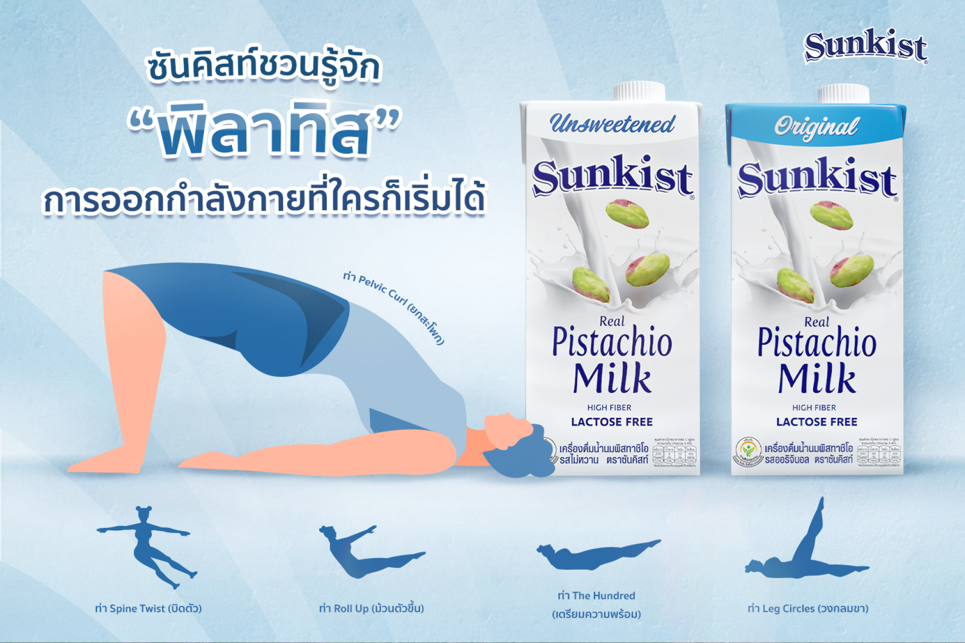 ซันคิสท์ ผลิตภัณฑ์ถั่วพิสทาชิโอ ถั่วพรีเมียมคุณภาพหลากหลายชนิด และเครื่องดื่มน้ำนมพิสทาชิโอ อยากชวนทุกคนมารู้จัก พิลาทิส การออกกำลังกายที่กำลังได้รับความนิยมเป็นอย่างมากในปัจจุบัน