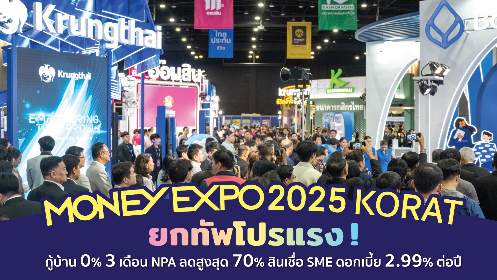 MONEY EXPO 2025 KORAT ยกทัพโปรแรง! กู้บ้าน 0% 3 เดือน NPA ลดสูงสุด 70% สินเชื่อ SME ดอกเบี้ย 2.99% ต่อปี