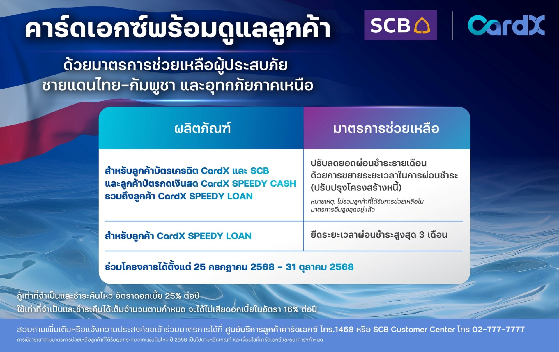 คาร์ดเอกซ์ ออกมาตรการเร่งด่วน ช่วยเหลือลูกค้าที่ได้รับผลกระทบจากสถานการณ์ ชายแดนไทยกัมพูชา และอุทกภัยภาคเหนือ
