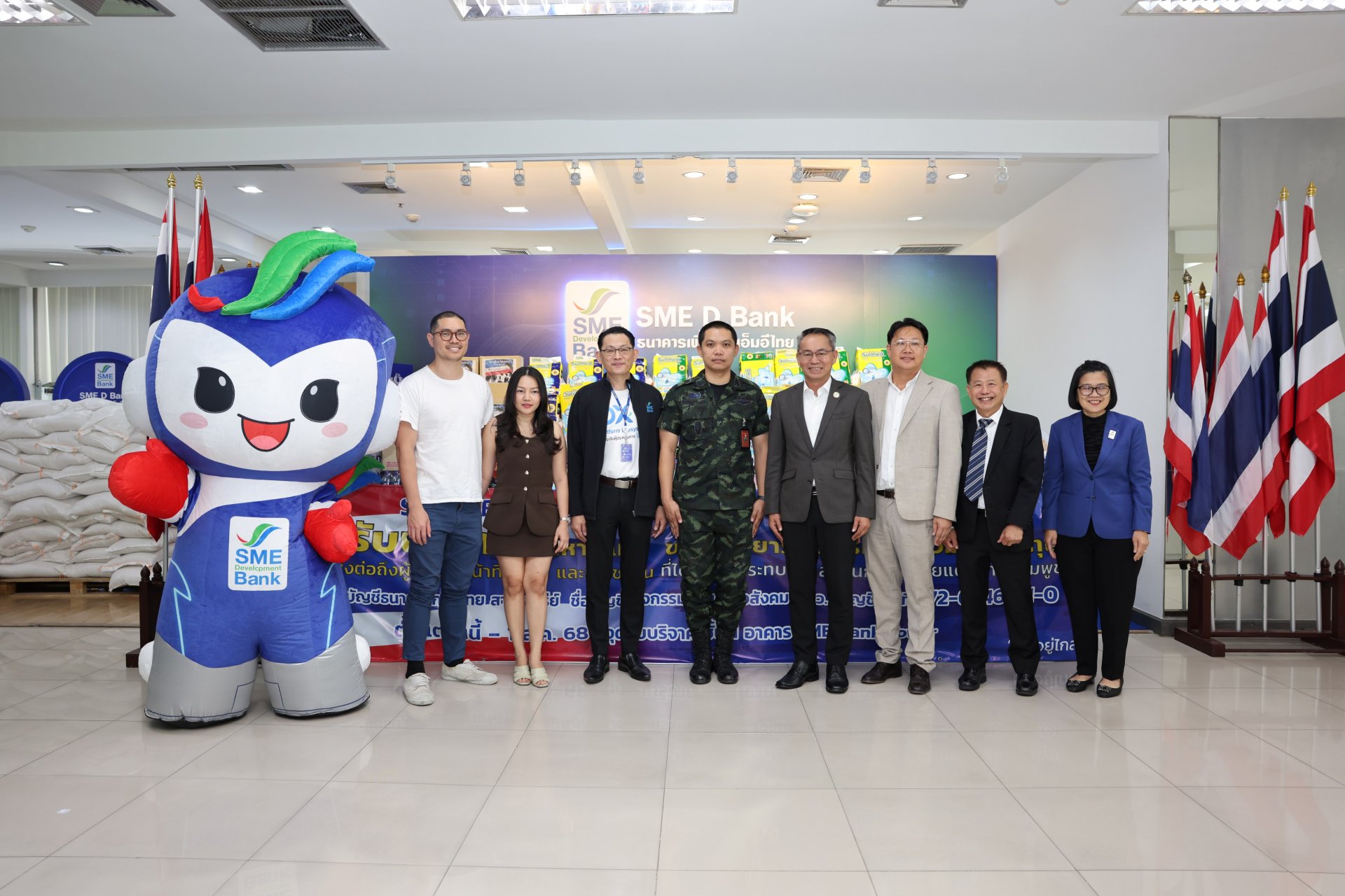 นายพิชิต มิทราวงศ์ กรรมการผู้จัดการ ธนาคารพัฒนาวิสาหกิจขนาดกลางและขนาดย่อมแห่งประเทศไทย (ธพว.) หรือ SME D Bank พร้อมด้วยผู้บริหารและเจ้าหน้าที่ ร่วมส่งมอบอาหารแห้ง ของใช้ ยารักษาโรค และสิ่งของจำเป็นต่าง ๆ ที่ได้รับบริจาคจากผู้บริหาร เจ้าหน้าที่ธนาคาร หน่วยงานพันธมิตร ลูกค้าธนาคาร ผู้ประกอบการเอสเอ็มอี และประชาชน ผ่านกิจกรรม รวมพลังคนไทย ส่งใจสู่ชายแดน ซึ่ง SME D Bank จับมือกับ มูลนิธิเส้นด้าย เพื่อนำไปมอบให้แก่ประชาชน ทหาร และผู้ปฏิบัติหน้าที่ ในพื้นที่สถานการณ์ความไม่สงบจากเหตุปะทะตามแนวพื้นที่ชายแดนไทย-กัมพูชา ช่วยบรรเทาความเดือดร้อนและนำไปใช้ในชีวิตประจำวัน โดยมี พ.อ.ณัฐพงษ์ ลมสูงเนิน ผู้อำนวยการกองสารสนเทศ กรมกิจการพลเรือนทหารบก เป็นผู้แทนรับมอบ ในโอกาสเดียวกันนี้ นายพีรพล กนกวลัย สมาชิกสภากรุงเทพมหานคร เขตพญาไท และ นายคริส โปตระนันทน์ ประธานมูลนิธิเส้นด้าย ได้ร่วมส่งมอบด้วย ณ บริเวณชั้น 1 สำนักงานใหญ่ SME D Bank อาคาร SME Bank Tower เมื่อวันที่ 6 ส.ค.68