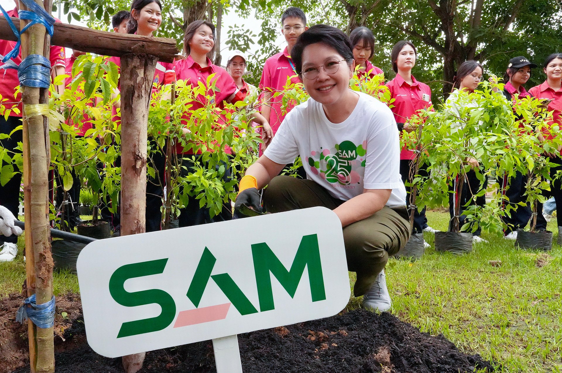 พร้อมกันนี้ SAM ยังจัดกิจกรรม SAM พื้นที่ความสุขเพื่อชุมชน บริเวณพื้นที่ส่วนกลางและสนามเด็กเล่นในโครงการหมู่บ้าน เค.ซี. การ์เด้นท์ โฮม 3 ซึ่งเดิมเป็นทรัพย์สินรอการขายหรือ NPA ที่ SAM บริจาคให้แก่ชุมชนเมื่อปี 2563 โดยปลูกไม้ยืนต้นและไม้ประดับเพื่อเพิ่มพื้นที่สีเขียวและออกซิเจน พร้อมปรับปรุงภูมิทัศน์โดยทาสีรั้ว เวทีแอโรบิคและเครื่องเล่นสนามต่าง ๆ ให้มีสีสันสวยงามสดใส ปลอดภัย น่าใช้งาน เหมาะสมเป็นพื้นที่แห่งการเรียนรู้และเพิ่มพัฒนาการของเด็กๆ รวมถึงการใช้ประโยชน์ร่วมกันของชาวชุมชน โดยภายในงานมีคณะผู้บริหาร พนักงานจิตอาสาจาก SAM และพันธมิตรที่สำคัญ ได้แก่ สำนักงานเขตคลองสามวา ตัวแทนชาวบ้านชุมชน เค.ซี. การ์เด้นท์ โฮมมากกว่า 200 คน และเด็กนักเรียนจิตอาสาจากโรงเรียนนวมินทราชินูทิศ สตรีวิทยา 2 ประมาณ 50 คนที่มาร่วมปลูกต้นไม้และรับของเล่นเป็นรางวัลแห่งการทำความดีในครั้งนี้ด้วย นับเป็นกิจกรรมที่สร้างความสุขแก่ครอบครัวของคนในชุมชนที่เป็นหน่วยเล็กที่สุดให้มีความเข้มแข็งและเป็นจุดเริ่มต้นของการสร้างสังคมที่ยั่งยืน