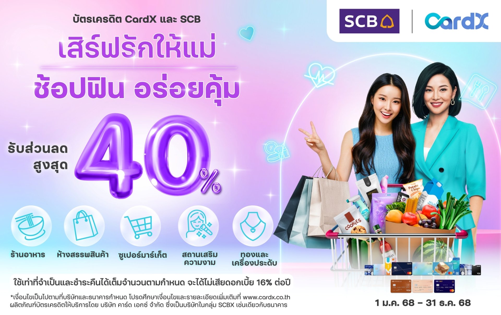 ระยะเวลาโปรโมชัน: ตั้งแต่วันนี้ 31 ธันวาคม 2568 สอบถามรายละเอียดเพิ่มเติมและตรวจสอบเงื่อนไขได้ที่ www.cardx.co.th