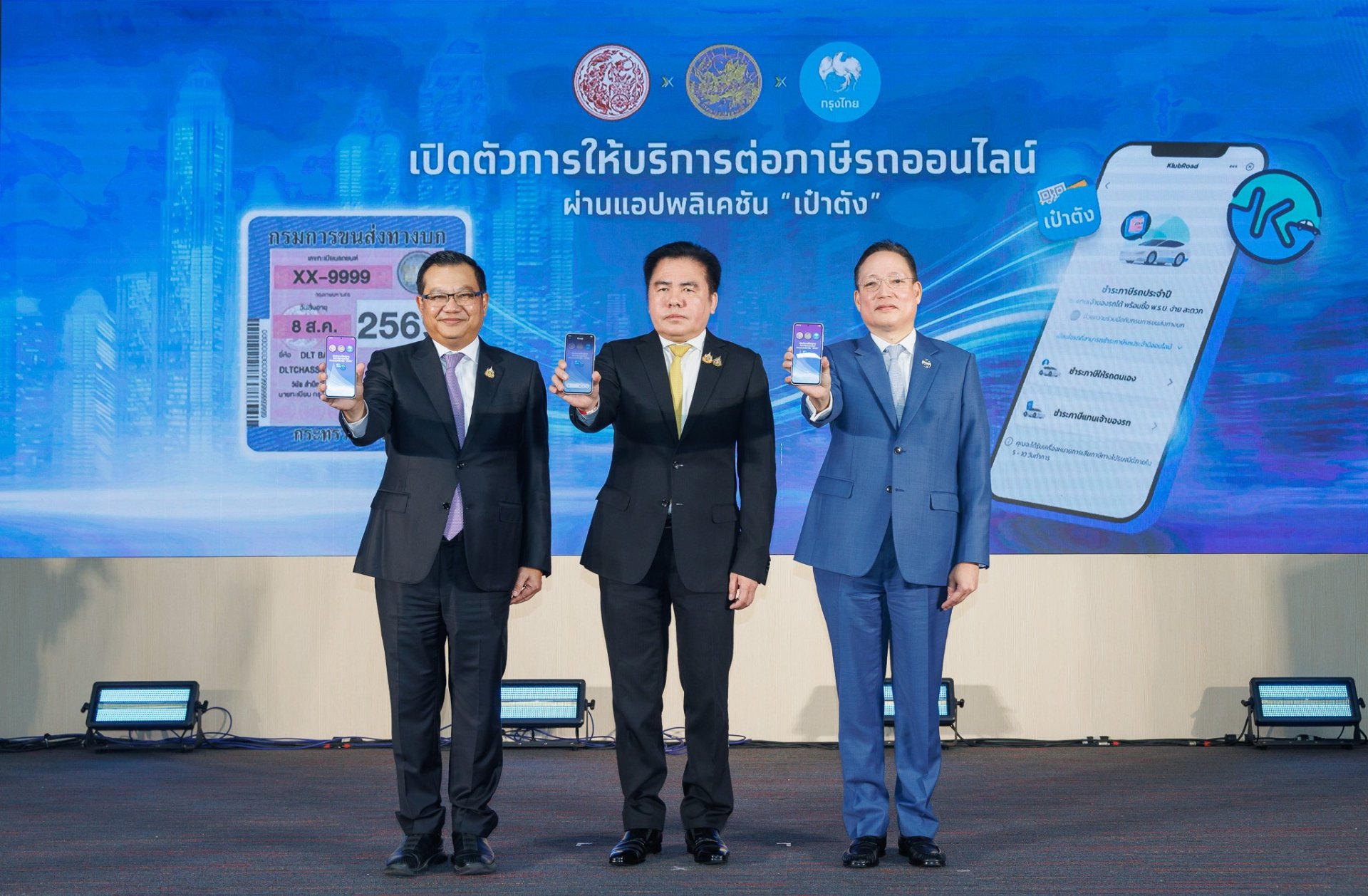 ในวันนี้จึงเป็นอีกหนึ่งก้าวสำคัญที่ทั้งสองหน่วยงานได้ร่วมมือกันต่อยอดพัฒนาการให้บริการชำระภาษีรถประจำปี ผ่านแอปพลิเคชัน เป๋าตัง ได้สำเร็จ โดยจากที่แอปฯเป๋าตังในปัจจุบันมีจำนวนผู้ใช้งานมากกว่า 40 ล้านราย ทำให้เชื่อได้ว่าระบบดังกล่าวจะช่วยเพิ่มจำนวนรายได้จากการจัดเก็บภาษีรถประจำปีได้อย่างมีนัยสำคัญ เพราะเป็นการอำนวยความสะดวกแก่ประชาชนที่ต้องการชำระภาษีรถ ให้สามารถทำธุรกรรมทุกขั้นตอนได้ผ่านแอปฯเป๋าตัง ตั้งแต่การยื่นชำระภาษี ชำระเงิน และรอรับเครื่องหมายการเสียภาษีที่บ้านผ่านช่องทางไปรษณีย์ไทย ซึ่งระหว่างที่รอรับการจัดส่งเครื่องหมายฯ ยังสามารถแสดงเครื่องหมายการเสียภาษีผ่านแอปฯเป๋าตังได้ภายในระยะเวลา 15 วันอีกด้วย ยิ่งไปกว่านั้นกรมการขนส่งทางบก และธนาคารกรุงไทย ได้ร่วมกันต่อยอดไปอีกขั้นโดยการพัฒนาระบบการให้บริการต่ออายุใบอนุญาตขับรถผ่านแอปฯเป๋าตัง ซึ่งระบบดังกล่าวสามารถเปิดให้ประชาชนใช้งานได้ภายในปี 2569 นอกจากนี้กรมการขนส่งทางบกได้ดำเนินการวางระบบสำหรับการนำเทคโนโลยีมาใช้ในการจดทะเบียนรถ (e-Service) โดยเป็นการยื่นเอกสารขอจดทะเบียนรถผ่านระบบอิเล็กทรอนิกส์เพื่อลดระยะเวลาการจดทะเบียน ส่งผลให้ประชาชนได้รับความสะดวก รวดเร็ว และช่วยลดการใช้ป้ายแดงระหว่างรอการจดทะเบียนรถ โดยในปี 2569 จะนำร่องใช้กับการจดทะเบียนรถสำหรับรถยนต์นั่งส่วนบุคคลไม่เกิน 7 คน (รย.1) และรถจักรยานยนต์ (รย.12) ก่อนขยายไปยังรถประเภทอื่นๆต่อไป