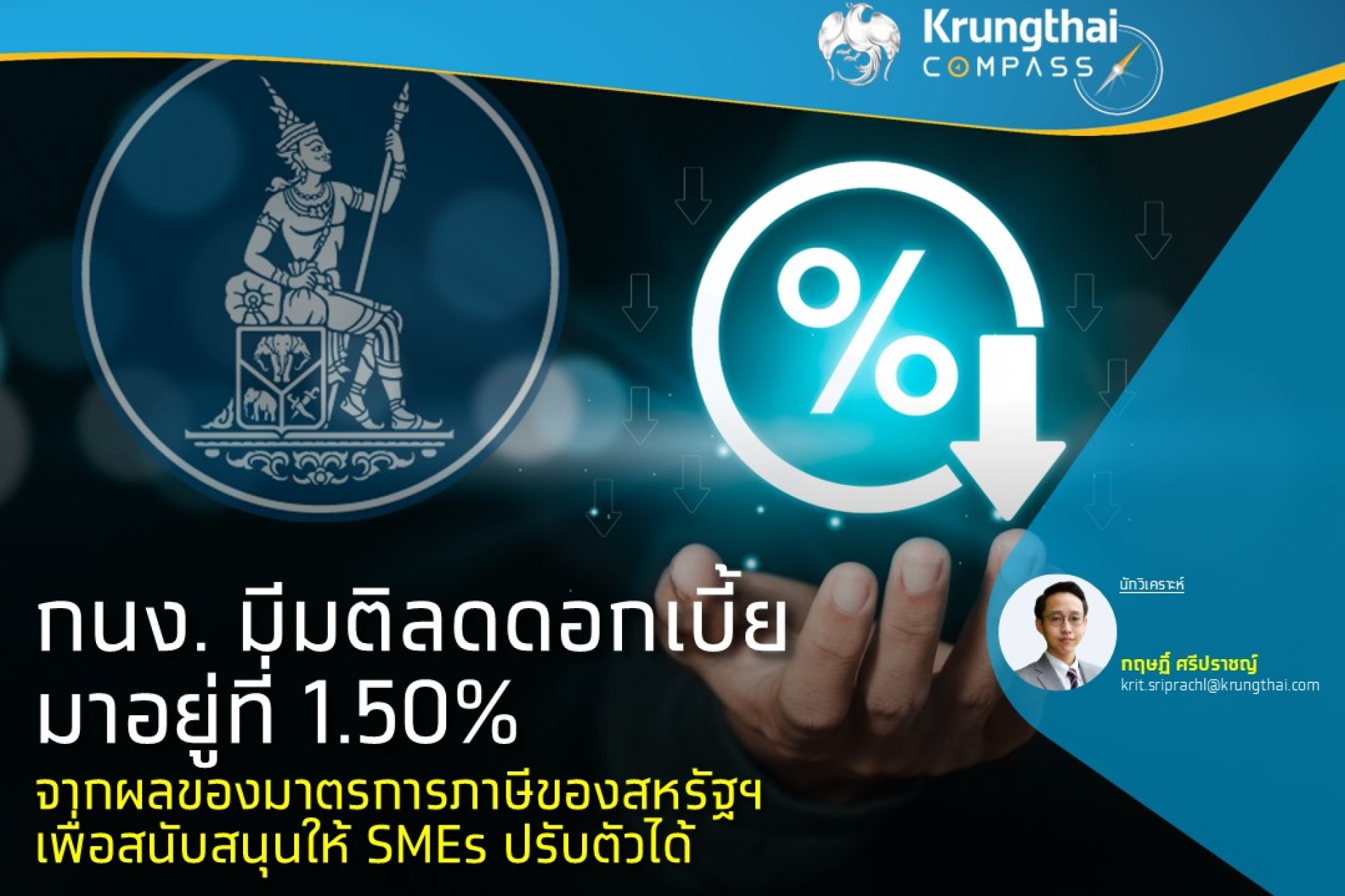 กนง.มีมติลดดอกเบี้ยมาอยู่ที่ 1.50% จากผลของมาตรการภาษีของสหรัฐฯ เพื่อสนับสนุนให้ SMEs ปรับตัวได้