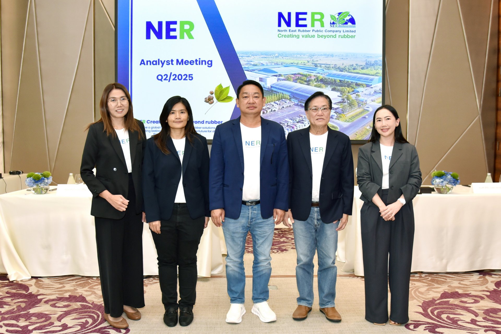 นายชูวิทย์ จึงธนสมบูรณ์ ประธานเจ้าหน้าที่บริหาร พร้อมด้วย นายศักดิ์ชัย จงสถาพงษ์พันธ์ รองประธานเจ้าหน้าที่บริหารสายงานบัญชี การเงิน และนางสาวปาร์ย อรรถพิสาล รองประธานเจ้าหน้าที่บริหารสายงานพัฒนาธุรกิจ บริษัท นอร์ทอีส รับเบอร์ จำกัด (มหาชน) หรือ NER ผู้ดำเนินธุรกิจผลิตและจำหน่าย ยางแผ่นรมควัน ยางแท่ง ยางผสม และสินค้าปลายน้ำแผ่นยางพาราปูพื้นคุณภาพสูง เพื่อจำหน่ายไปยังผู้ผลิตในอุตสาหกรรมยานยนต์ กลุ่มผู้ค้าคนกลาง ทั้งในประเทศและต่างประเทศ พบนักวิเคราะห์และนักลงทุน สรุปผลการดำเนินงานไตรมาส2 ประจำปี 2568 พร้อมแผนธุรกิจครึ่งปีหลัง ณ โรงแรมสยามเคมปินสกี้ กรุงเทพ ถนนพระราม1 เมื่อเร็วๆ นี้