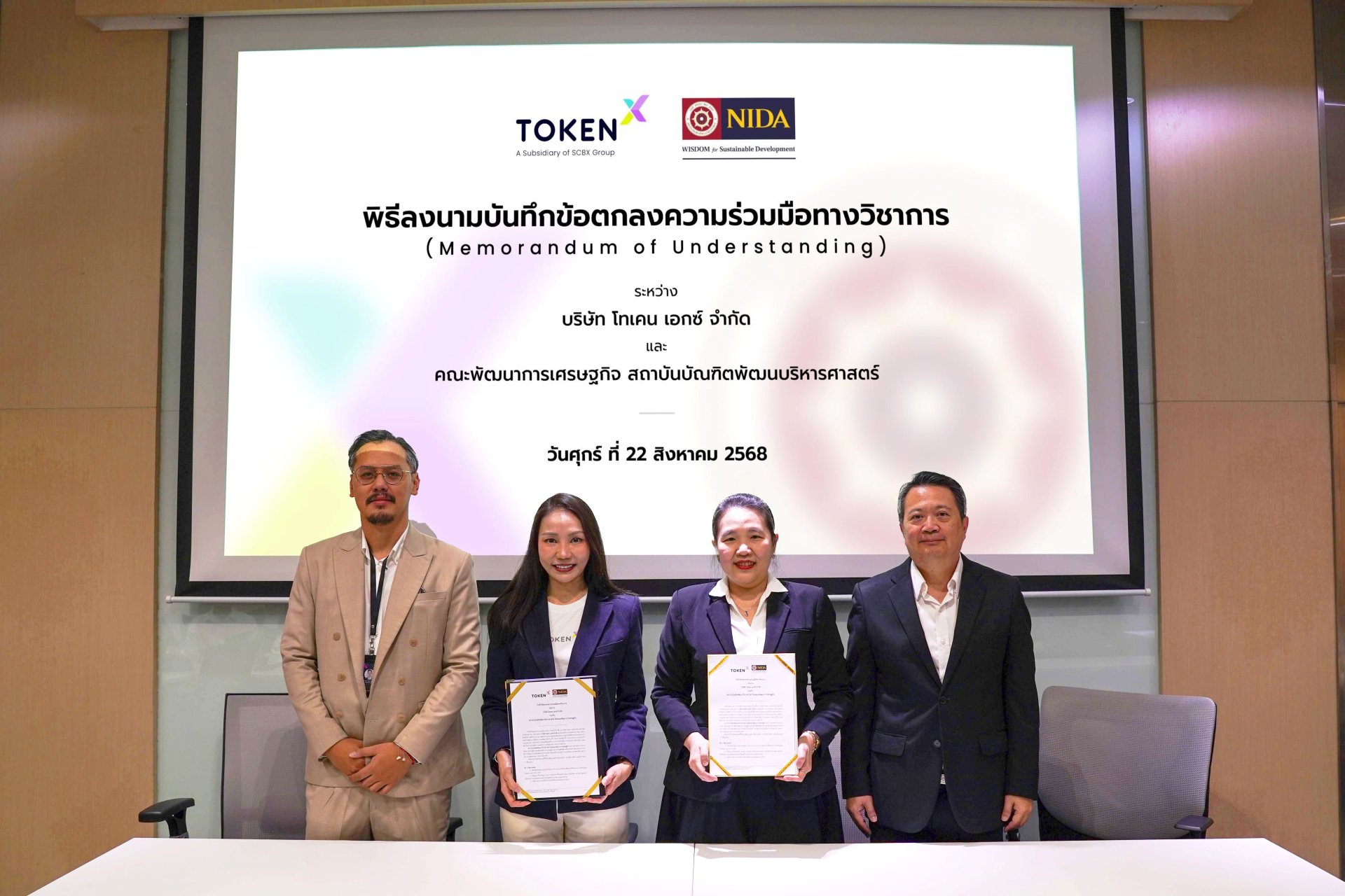 บริษัท โทเคน เอกซ์ จำกัด (Token X) และ สถาบันบัณฑิตพัฒนบริหารศาสตร์ (NIDA) โดย คณะพัฒนาการเศรษฐกิจ ร่วมลงนามบันทึกข้อตกลงความร่วมมือทางวิชาการ (MOU) เพื่อพัฒนาศักยภาพนักศึกษา และเสริมสร้างเครือข่ายความร่วมมือระหว่างสถาบันอุดมศึกษากับภาคอุตสาหกรรมการเงินและเทคโนโลยี โดยมีผู้บริหารจากโทเคน เอกซ์ พร้อมด้วย คณบดี อาจารย์ และนักศึกษาจาก คณะพัฒนาการเศรษฐกิจ สถาบันบัณฑิตพัฒนบริหารศาสตร์ (NIDA) เข้าร่วม เป็นสักขีพยานสะท้อนถึงความตั้งใจร่วมกันในการสร้างประโยชน์ และยกระดับโอกาสทางการศึกษาในยุคดิจิทัล