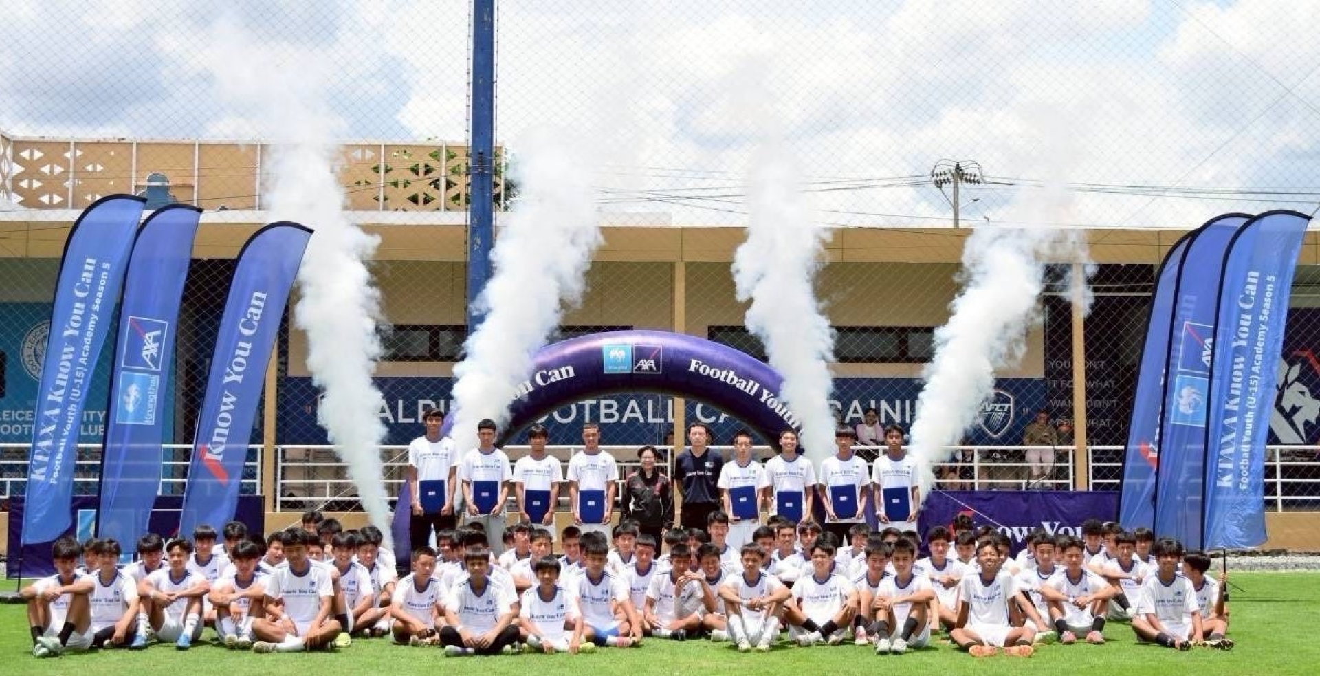 บมจ.กรุงไทย-แอกซ่า ประกันชีวิต นำโดย คุณบุปผาวดี โอวรารินท์ ประธานเจ้าหน้าที่บริหาร ฝ่ายการตลาด (คนที่ 5 จากซ้าย) จัดกิจกรรม "KTAXA Know You Can Football Youth (U15) Academy ปีที่ 5" สนามสุดท้าย ภาคกลาง ณ สนามอัลไพน์ ฟุตบอล แคมป์ เทรนนิ่ง กรุงเทพ ซึ่งได้รับการตอบรับเป็นอย่างดี โดยมีเยาวชนชายหญิงอายุระหว่าง 13-15 ปี เข้าร่วมกิจกรรมกว่า 600 คน เพื่อคัดเลือกสุดยอดเยาวชนไทยที่มีทักษะในกีฬาฟุตบอล สำหรับเยาวชนที่ผ่านการคัดเลือกจะได้รับทุนการศึกษามูลค่ารวมกว่า 200,000 บาท พร้อมรับกรมธรรม์ประกันสุขภาพโรคร้ายแรงทุนประกันรวมมูลค่ากว่า 5,000,000 บาท