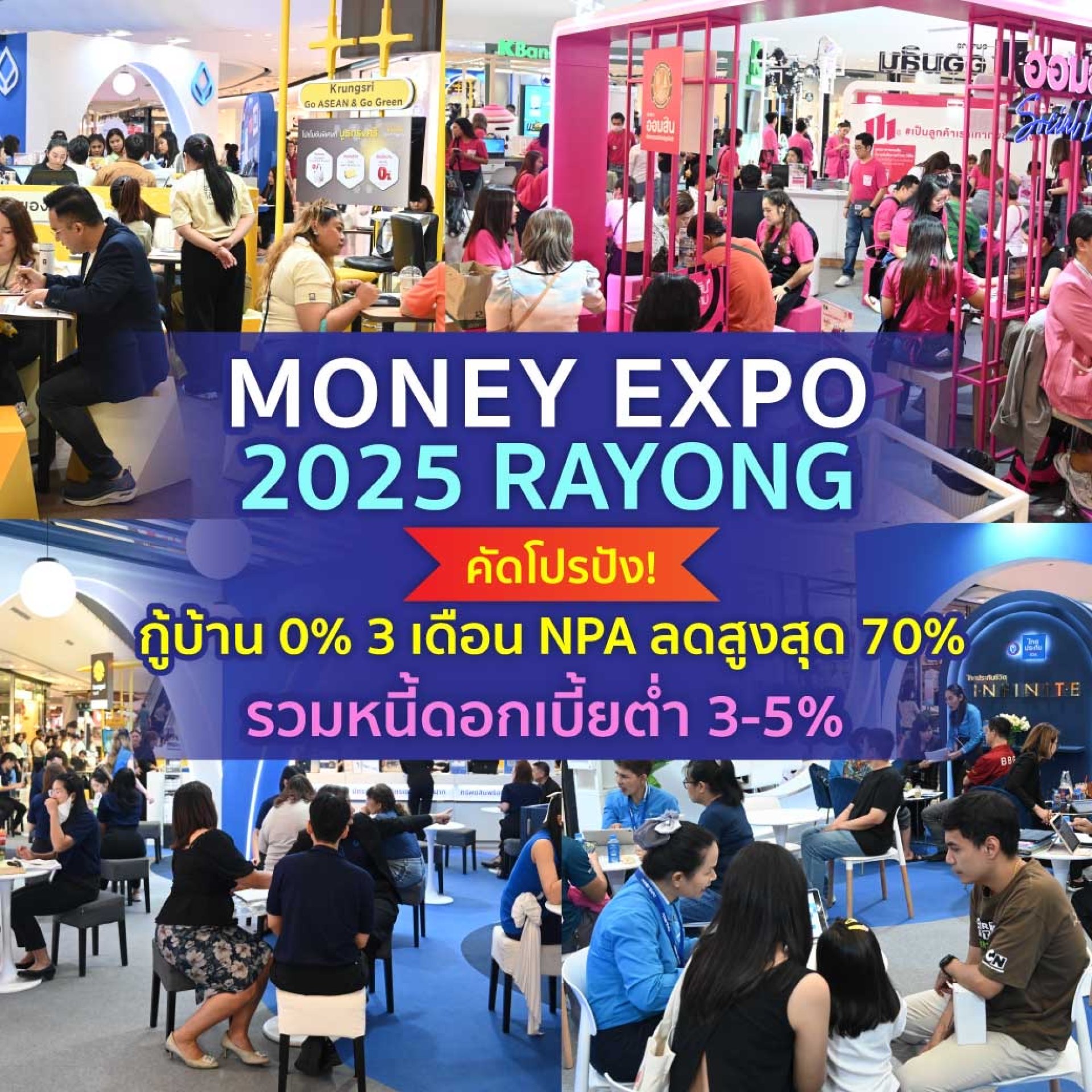 MONEY EXPO 2025 RAYONG คัดโปรปัง! กู้บ้าน 0% 3 เดือน NPA ลดสูงสุด 70% รวมหนี้ดอกเบี้ยต่ำ 3-5% ผ่อนนาน 10 ปี
