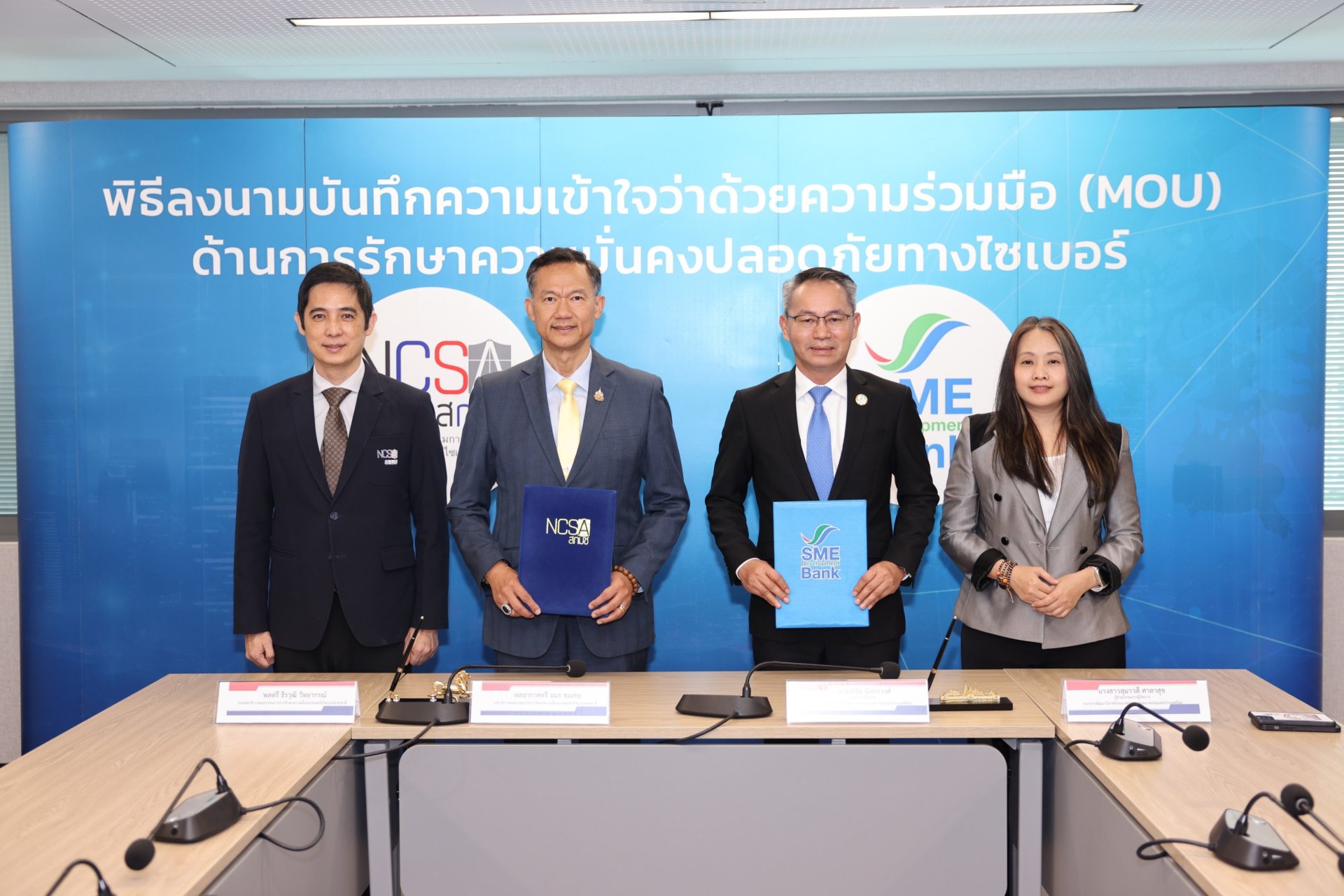 นายพิชิต มิทราวงศ์ กรรมการผู้จัดการ ธนาคารพัฒนาวิสาหกิจขนาดกลางและขนาดย่อมแห่งประเทศไทย (ธพว.) หรือ SME D Bank และ พลอากาศตรี อมร ชมเชย เลขาธิการคณะกรรมการการรักษาความมั่นคงปลอดภัยไซเบอร์แห่งชาติ (สกมช.) ร่วมลงนามบันทึกความเข้าใจ (MOU) ว่าด้วยความร่วมมือด้านการรักษาความมั่นคงปลอดภัยไซเบอร์ เพื่อเสริมสร้างความมั่นคงปลอดภัยทางดิจิทัล คุ้มครองธุรกิจไทยและสร้างความเชื่อมั่นให้แก่สังคมดิจิทัล ถือเป็นก้าวสำคัญที่ยกระดับมาตรฐานในการปกป้องระบบธนาคารและข้อมูลของลูกค้า สร้างความเชื่อมั่น และความปลอดภัย จากภัยคุกคามทางไซเบอร์ที่มีความซับซ้อนและรุนแรงมากขึ้น สะท้อนถึงความมุ่งมั่นของ SME D Bank ที่ให้ความสำคัญในการคุ้มครอง และสร้างระบบนิเวศทางการเงินดิจิทัลที่ปลอดภัยและเชื่อถือได้ให้แก่ผู้ประกอบการเอสเอ็มอี ผ่านการสนับสนุนองค์ความรู้ การฝึกอบรม ช่วยเฝ้าระวัง เช่น การปลอมแปลงธุรกรรม การโจรกรรมข้อมูล หรือการหลอกลวงผ่านช่องทางออนไลน์ รวมถึง การประยุกต์ใช้มาตรการความมั่นคงปลอดภัยที่ได้มาตรฐานสากล ส่งเสริมให้ผู้ประกอบการเอสเอ็มอีดำเนินธุรกิจในยุคดิจิทัลได้อย่างมั่นใจ ลดความเสี่ยงจากภัยไซเบอร์ในปัจจุบันและอนาคต ณ สำนักงาน สกมช. เมื่อวันที่ 26 ส.ค.68 ที่ผ่านมา