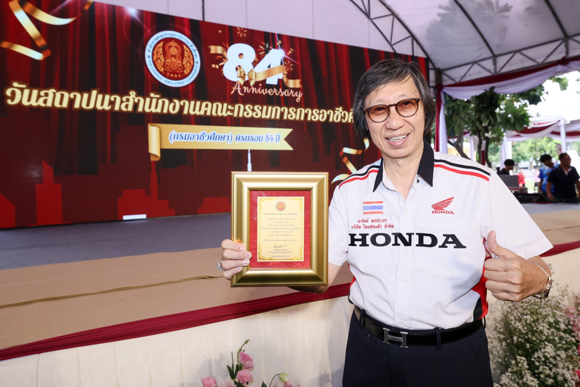 ไทยฮอนด้า ผู้ผลิตและจัดจำหน่ายรถจักรยานยนต์ และเครื่องยนต์อเนกประสงค์ฮอนด้าในประเทศไทย นำโดย ดร.อารักษ์ พรประภา ประธานบริษัท ไทยฮอนด้า จำกัด เข้ารับมอบประกาศเกียรติคุณผู้มีคุณูปการแก่สำนักงานคณะกรรมการการอาชีวศึกษา โดยมี ศ.ดร.นฤมล ภิญโญสินวัฒน์ รัฐมนตรีว่าการกระทรวงศึกษาธิการ เป็นผู้มอบรางวัลอันทรงเกียรตินี้ ในงานวันคล้ายวันสถาปนาสำนักงานคณะกรรมการการอาชีวศึกษา ครบรอบ 84 ปี ณ สำนักงานคณะกรรมการการอาชีวศึกษา