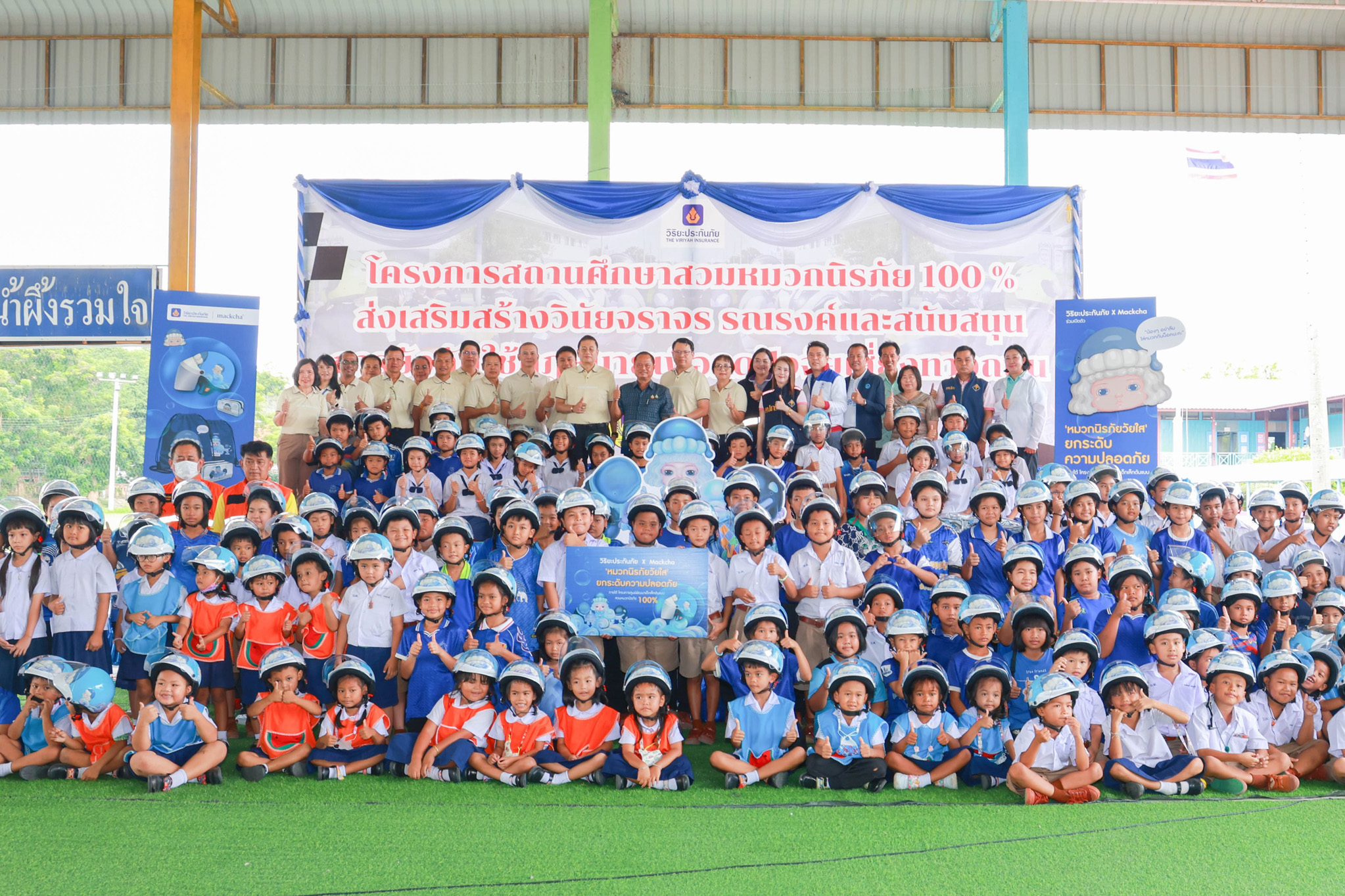 วิริยะประกันภัย มอบหมวกนิรภัยวัยใส ร.ร.บ้านน้ำผึ้ง จ.อ่างทอง หนุนสร้างสถานศึกษาสวมหมวกนิรภัย 100%