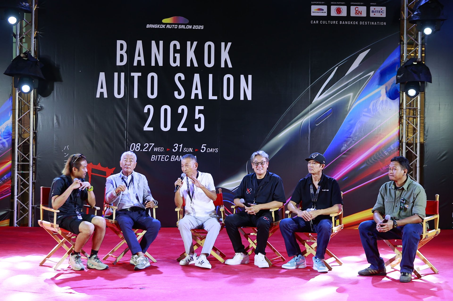 โดย 4 ตำนานเจ้าสำนักได้ขึ้นเวทีให้สัมภาษณ์และกล่าวถึงความประทับใจงาน Bangkok Auto Salon 2025 Mr. Daijiro Inada บ.ก.ใหญ่ ผู้ผ่านรถแต่งมาทั้งชีวิต กล่าวว่า "การแต่งรถกระบะในไทย เรียกได้ว่าเป็นแรร์ ไอเท็ม (rare item) ที่ญี่ปุ่นไม่มี การแต่งรถกระบะแบบจัดเต็มทุกคัน ทำให้ผมประทับใจมาก นับเป็นจุดเด่นวัฒนธรรมการแต่งรถของไทย เรียกว่า เป็นไทยสไตล์ได้ ด้าน Mr. Tatsuru Ichishima จาก spoon เผยว่า ผมทึ่งมากที่ได้เห็นรถในงาน ตั้งแต่ยุค 40s 50s 60s 70s เป็นรถรุ่นโบราณที่นำมาทำคืนชีพให้อยู่สภาพดีเหมือนใหม่ได้ ส่วน Mr. Takahiro Ueno จาก Vertex บอกว่า การ restore รถรุ่นเก่า ๆ ให้กลับมาอยู่ในสภาพสมบูรณ์เป็นไปได้ยากมาก ได้มาเห็นรถรุ่นเก่าที่สมบรูณ์ของไทยในงานนี้แล้วประทับใจมาก และ Mr. Ken Amemiya กล่าวทิ้งท้ายว่า เมื่อปีที่แล้วผมได้มางาน Bangkok Auto Salon เห็นรถแต่งและรถของคาร์คลับ แต่งแบบจัดเต็มมากๆ จนรู้สึกเขิน ต้องกลับไปคิดและตกแต่งทำรถออกมาให้สมกับเป็นเจ้าสำนักต้นแบบของรถโรตารี่
