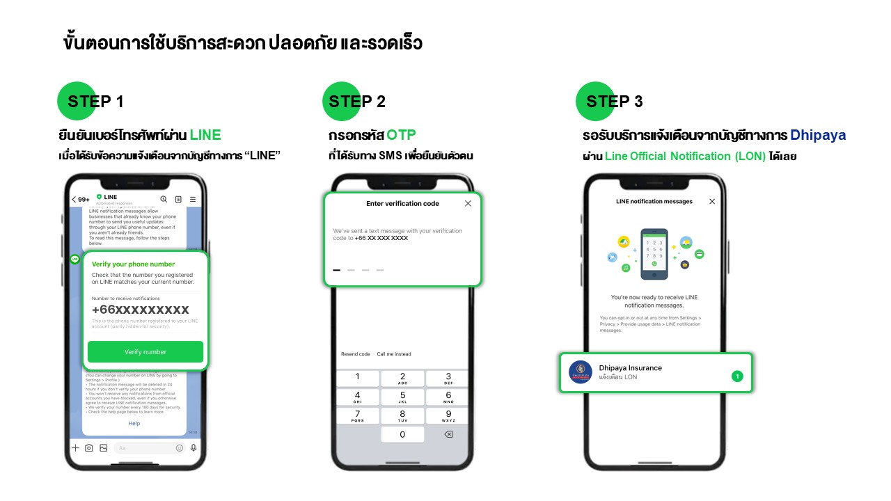 บริษัท ทิพยประกันภัย จำกัด (มหาชน) ตอกย้ำความมุ่งมั่นในการสร้างนวัตกรรมเพื่อยกระดับ ประสบการณ์ลูกค้า อย่างรอบด้าน จับมือ LINE ประเทศไทย เปิดตัวบริการ แจ้งเตือนผ่าน LINE Official Notification (LON) เสริมความสะดวก มั่นใจ และปลอดภัยสูงสุดในการสื่อสารกับลูกค้า ผ่านช่องทางดิจิทัลที่น่าเชื่อถือ ภายใต้ LINE Official Account: @DhipayaInsurance ซึ่งเป็นบัญชีพรีเมียมที่ได้รับการรับรอง (โล่สีเงิน) จาก LINE