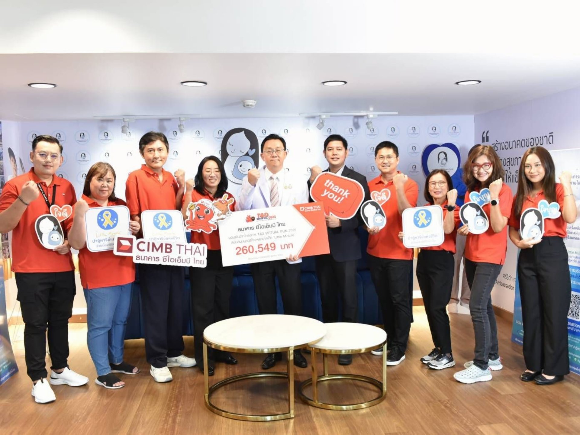 คุณพรภัทร อาทรสมบัติ ผู้บริหารฝ่าย Cyber Security and Service Delivery และคุณขนิษฐา กิตติสัตยกุล ผู้บริหารที่ปรึกษา IT Consultant ธนาคาร ซีไอเอ็มบี ไทย จำกัด (มหาชน) พร้อมด้วยพนักงาน ส่งมอบเงินบริจาคจำนวน 260,549 บาท จากการระดมทุนของพนักงานในกิจกรรมภายใน CIMB THAI T&D Virtual Run 2025 ให้กับโครงการ Little Miracle ช่วยน้องพิชิตมะเร็ง มูลนิธิโรงพยาบาลเด็ก เพื่อสนับสนุนการสร้างหอผู้ป่วยปลูกถ่ายไขกระดูกและสเต็มเซลล์ (BMT Unit) ณ โรงพยาบาลเด็ก โดยมีนายแพทย์อาคม ชัยวีระวัฒนะ ผู้อำนวยการสถาบันสุขภาพเด็กแห่งชาติมหาราชินี และคุณสมชาติ ไชยเขตต์ รักษาการรองผู้อำนวยการด้านอำนวยการ เป็นผู้รับมอบ
