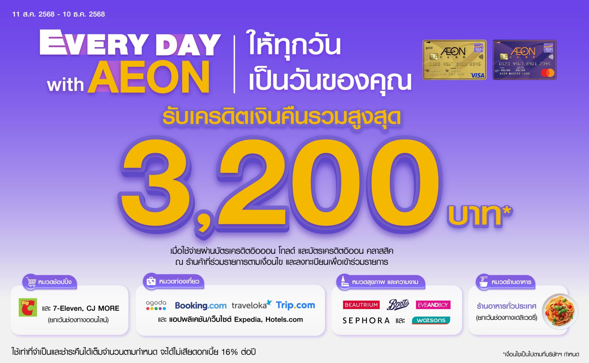 อิออน เติมเต็มไลฟ์สไตล์ให้ทุกวันเป็นวันของคุณ รับเครดิตเงินคืนรวมสูงสุด 3,200 บาท เมื่อใช้จ่ายด้วยบัตรเครดิตอิออน*