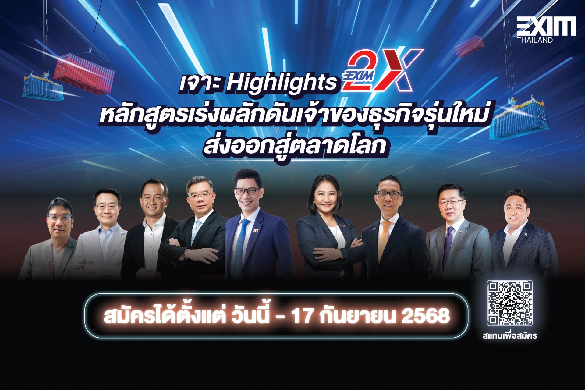 ธนาคารเพื่อการส่งออกและนำเข้าแห่งประเทศไทย (EXIM BANK) ขอเชิญผู้ประกอบการรุ่นใหม่ เข้าร่วมอบรมหลักสูตร EXIM 2X เพื่อขยายเครือข่าย ต่อยอดความรู้ วางแผนกลยุทธ์สู่เวทีการค้าโลก สมัครได้แล้วตั้งแต่บัดนี้-17 กันยายน 2568 (ประกาศผลการคัดเลือกเพื่อเข้าสู่รอบ Pitching วันที่ 19 กันยายน 2568)