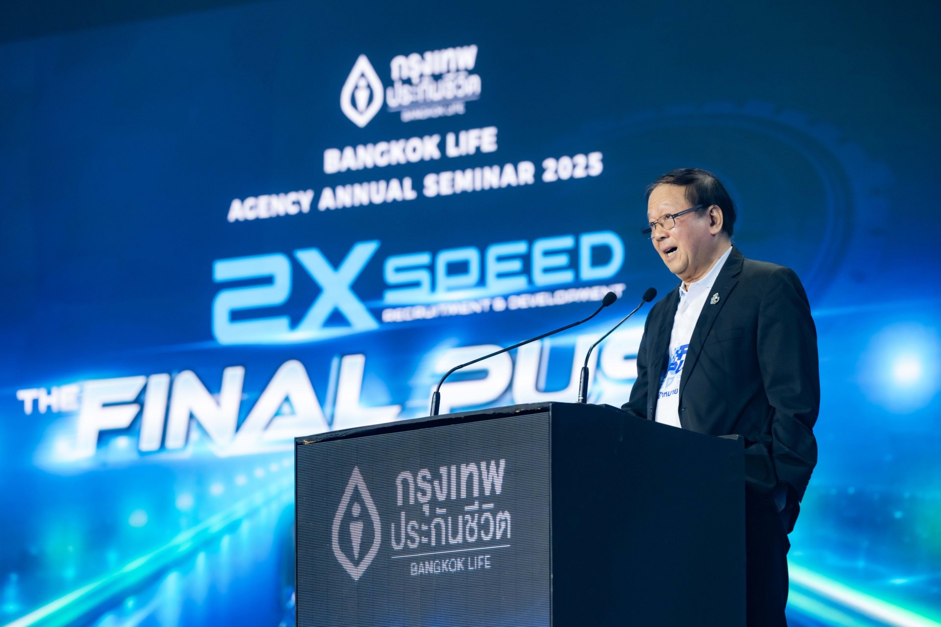 กรุงเทพประกันชีวิต จัดงานสัมมนาใหญ่ฝ่ายขายประจำปี 2568 Bangkok Life Agency Annual Seminar 2025 ภายใต้แนวคิด 2X Speed The Final Push เร่งสุดสปีด พุ่งสู่เป้าหมาย 2025 ล้านบาท ปลุกพลังทีมนักขายร่วมขับเคลื่อนองค์กรในการเร่งสร้างและพัฒนาเพื่อเป็น ตัวแทนของความใส่ใจ ทั้งลูกค้าและทีมงาน ตามวิสัยทัศน์ในการก้าวสู่การเป็นบริษัทประกันชีวิตอันดับ 1 ในด้านความ ใส่ใจ เพื่อสร้างการเติบโตอย่างยั่งยืน โดยมี ดร.ศิริ การเจริญดี ประธานกรรมการ เป็นประธานเปิดงาน พร้อมด้วย นายโชน โสภณพนิช กรรมการผู้จัดการใหญ่และประธานเจ้าหน้าที่บริหาร และผู้บริหารระดับสูง ตัวแทน ผู้บริหารตัวแทนประกันชีวิตและที่ปรึกษาทางการเงินจากทั่วประเทศร่วมงานกว่า 1,300 คน ณ โรงแรมรอยัล คลิฟ โฮเต็ล กรุ๊ป พัทยา