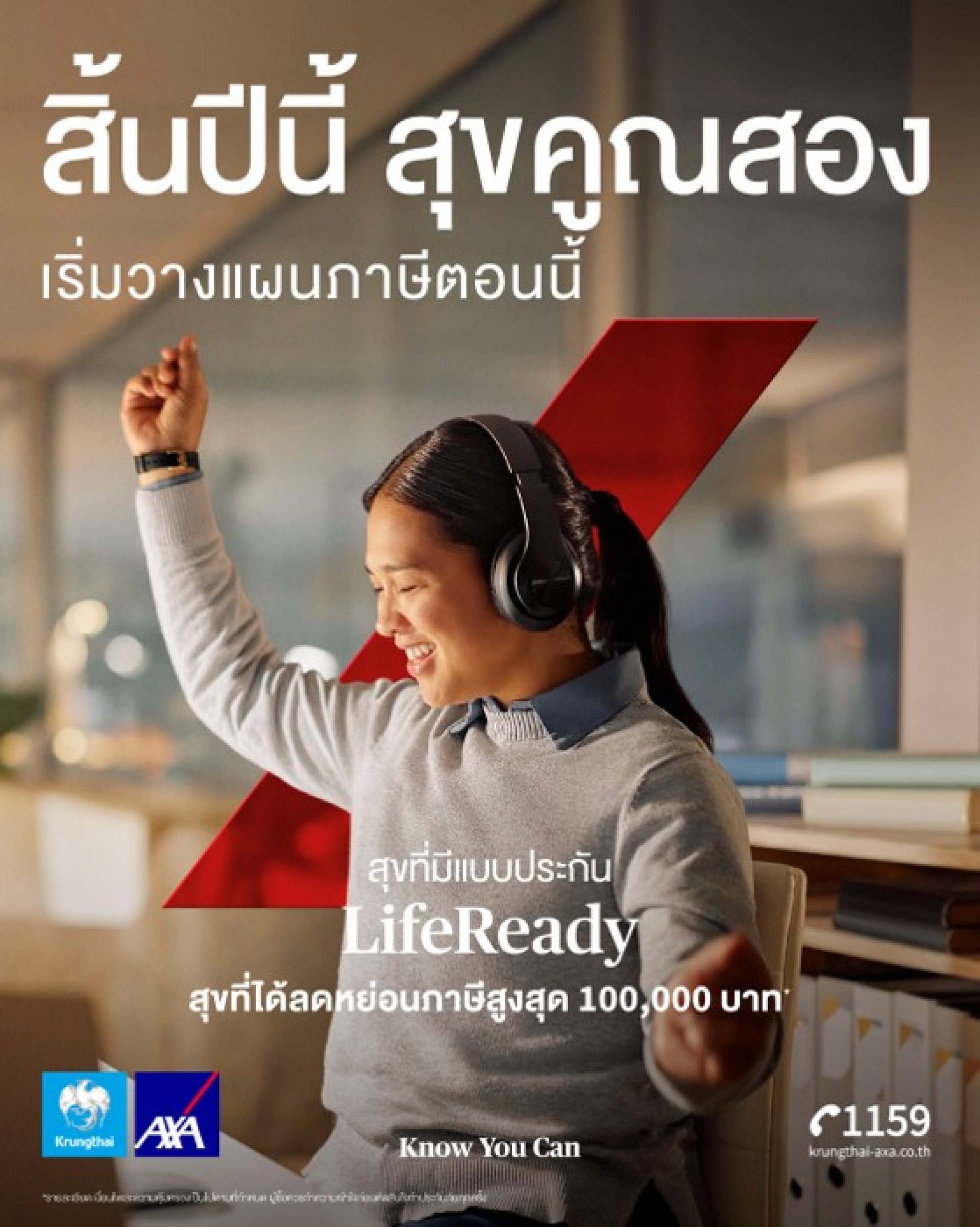 บมจ.กรุงไทย-แอกซ่า ประกันชีวิต ผู้นำธุรกิจประกันชีวิตและสุขภาพ เปิดตัวแคมเปญใหม่ รับเทศกาลภาษีปลายปีนี้ กับแคมเปญ สิ้นปีนี้ สุขคูณสอง เริ่มวางแผนภาษี สุขที่ได้มีประกัน และสุขที่ได้เงินลดหย่อนภาษี โดยสามารถลดหย่อนสูงสุด 300,000 บาท* พร้อมสนับสนุนคนไทยได้เริ่มวางแผนภาษีและสนับสนุนการวางแผนการเงิน ผ่านประกันที่หลากหลาย ตามไลฟ์สไตล์ ได้แก่