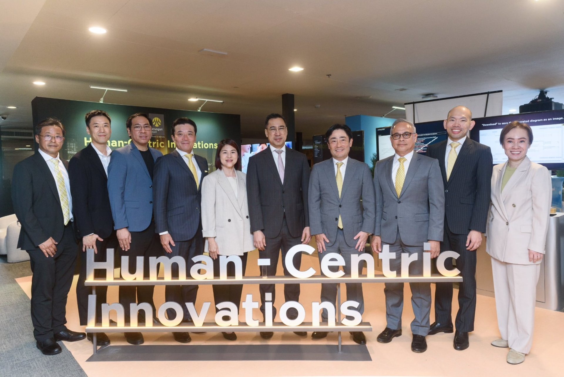 กรุงศรี (ธนาคารกรุงศรีอยุธยา จำกัด (มหาชน) และบริษัทในเครือ) โดย นายเคนอิจิ ยามาโตะ (ที่ 4 จากขวา) กรรมการผู้จัดการใหญ่และประธานเจ้าหน้าที่บริหาร พร้อมด้วยคณะผู้บริหาร ให้การต้อนรับ นายเศรษฐพุฒิ สุทธิวาทนฤพุฒิ (ที่ 5 จากขวา) ผู้ว่าการธนาคารแห่งประเทศไทย (ธปท.) ณ บูธจัดแสดง Krungsri Innovation Lounge ภายใต้แนวคิด Human-Centric Innovations นำเสนอเทคโนโลยี AI การวิเคราะห์ข้อมูลขั้นสูง และนวัตกรรม ที่งาน Bangkok Digital Finance Conference (BDFC) 2025 การประชุมด้านการเงินดิจิทัลสุดยิ่งใหญ่ จัดขึ้นภายใต้ความร่วมมือของธนาคารแห่งประเทศไทย และ Global Finance & Technology Network (GFTN) ณ ศูนย์การเรียนรู้ธนาคารแห่งประเทศไทย