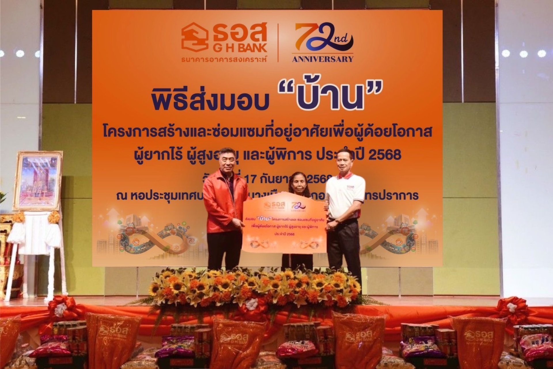 ธนาคารอาคารสงเคราะห์ (ธอส.) เดินหน้าตอบแทนสังคมสู่ความยั่งยืน ส่งมอบบ้านภายใต้โครงการสร้างและซ่อมแซมที่อยู่อาศัยเพื่อผู้ด้อยโอกาส ผู้ยากไร้ ผู้สูงอายุ และผู้พิการ ปี 2568 ตลอด 15 ปี รวมแล้วกว่า 5,120 หลัง โดยปี 2568 ธอส. สามารถสร้างและซ่อมแซมบ้านรวม 258 หลัง และวันนี้ (17 กันยายน 2568) ได้ส่งมอบบ้านสร้างใหม่และบ้านซ่อมแซม จำนวน 11 หลัง ในจังหวัดสมุทรปราการ สะท้อนการเป็นองค์กรที่มีความรับผิดชอบต่อสังคมและสิ่งแวดล้อม (CSR)