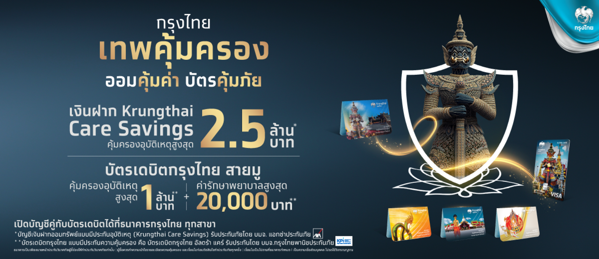กรุงไทยเปิดตัว บัญชีเงินฝากออมทรัพย์แบบมีประกันอุบัติเหตุ (Krungthai Care Savings) คู่บัตรเดบิตกรุงไทย สายมู เทพคุ้มครอง ออมคุ้มค่า บัตรคุ้มภัย เสริมความมั่นใจครบทุกมิติ