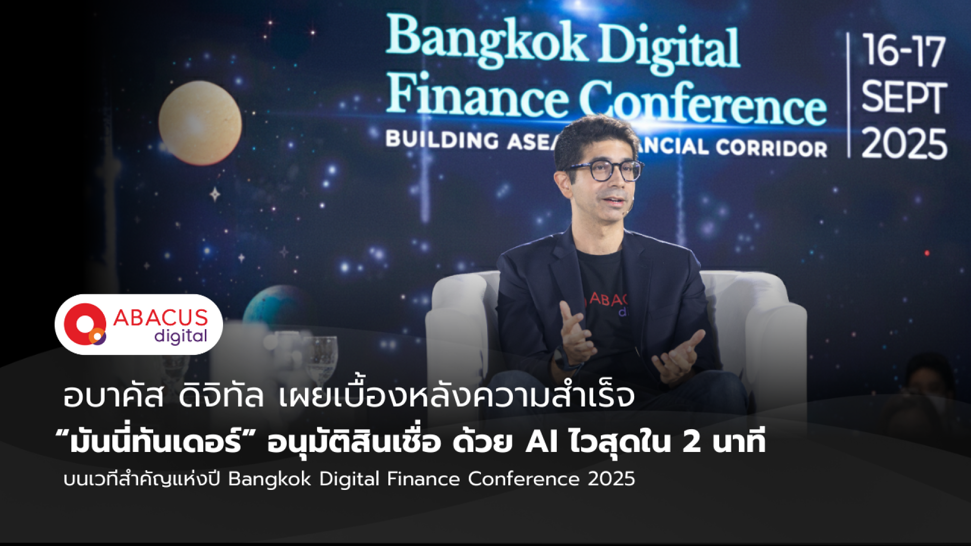 อีบาคัส ดิจิทัล เผยเบื้องหลัง ความสำเร็จของ มันนี่ทันเดอร์ กับ การอนุมัติด้วย AI ไวสุดใน 2 นาที บนเวทีสำคัญแห่งปี Bangkok Digital Finance Conference 2025