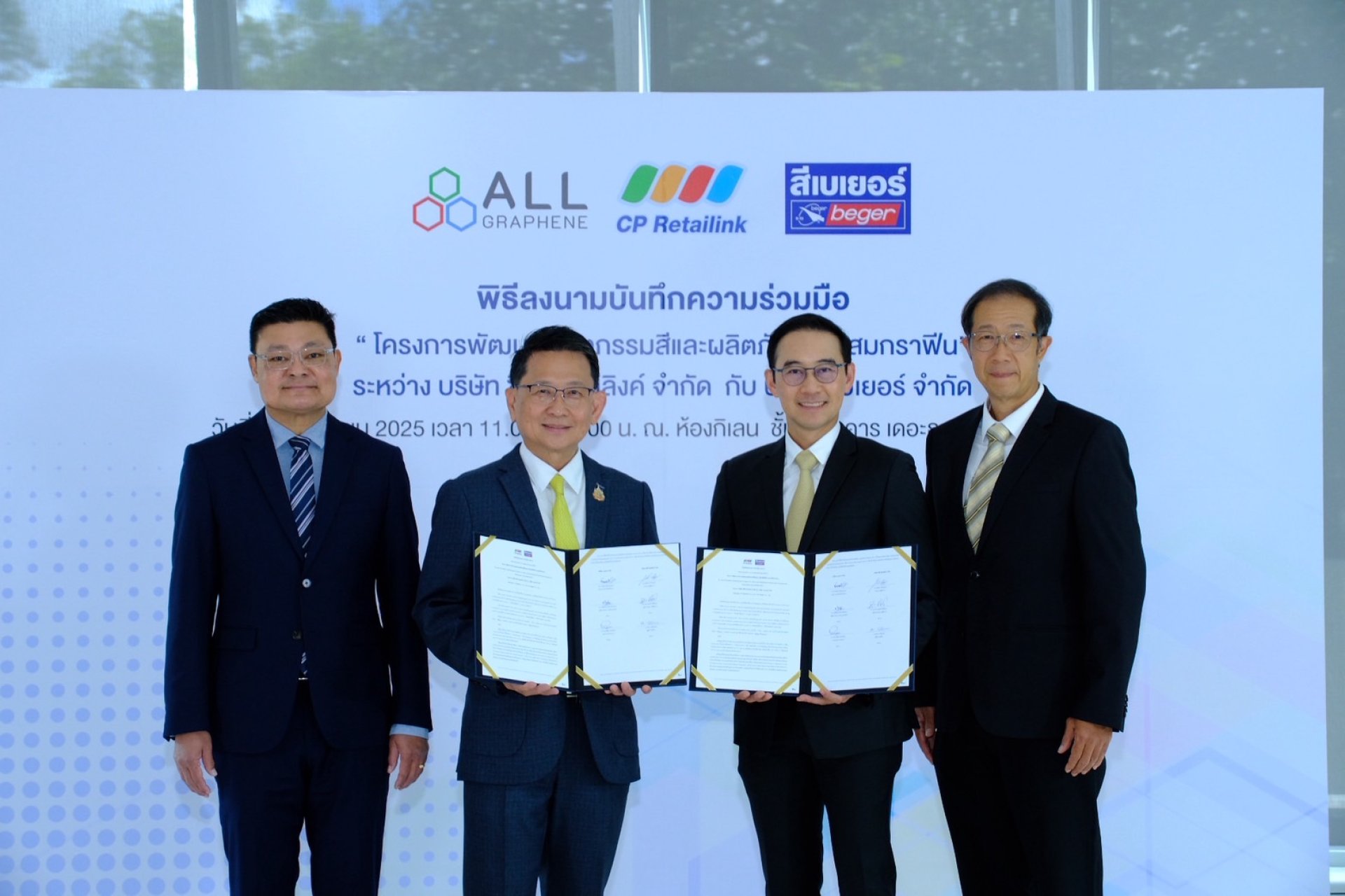 บริษัท เบเยอร์ จำกัด (Beger) ผู้นำด้านนวัตกรรมสีทาอาคารและเคมีภัณฑ์ก่อสร้างของไทย ร่วมกับ บริษัท ซีพี รีเทลลิงค์ จำกัด (CP Retailink) ผู้นำโซลูชันระบบค้าปลีกและผู้พัฒนาวัสดุกราฟีน ลงนามบันทึกข้อตกลงความร่วมมือทางวิชาการ (MOU) เพื่อพัฒนา Graphene for Paint Technology นวัตกรรมใหม่สำหรับสีรุ่นใหม่ที่ต่อยอดการใช้วัสดุกราฟีนในอุตสาหกรรมสีและเคมีภัณฑ์ก่อสร้าง ณ ห้องกิเลน ชั้น L เดอะ ธารา แจ้งวัฒนะ