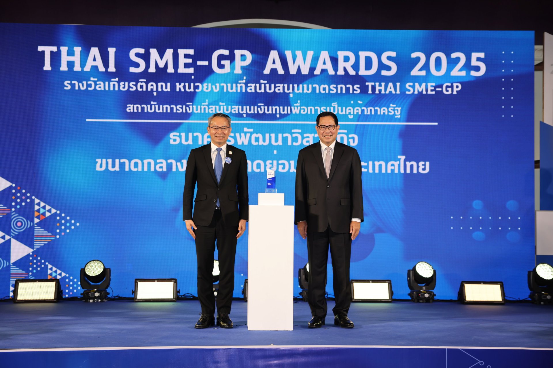 นายพิชิต มิทราวงศ์ กรรมการผู้จัดการ ธนาคารพัฒนาวิสาหกิจขนาดกลางและขนาดย่อมแห่งประเทศไทย (ธพว.) หรือ SME D Bank รับมอบโล่ประกาศเกียรติคุณ "THAI SME-GP AWARDS 2025" จากสำนักงานส่งเสริมวิสาหกิจขนาดกลางและขนาดย่อม (สสว.) ในฐานะหน่วยงานสถาบันการเงิน สนับสนุนการเข้าถึงแหล่งเงินทุนของผู้ประกอบการเอสเอ็มอี เพื่อการเป็นคู่ค้ากับภาครัฐ ประจำปีงบประมาณ 2567 โดยมี นายฐิติพงศ์ เขียวไพศาล ประธานกรรมการบริหาร สสว. เป็นผู้มอบ และ ดร.ปณิตา ชินวัตร รองผู้อำนวยการ รักษาการแทนผู้อำนวยการ สสว. กล่าวรายวัตถุประสงค์การจัดงาน ซึ่งมีเป้าหมายสร้างโอกาสให้ผู้ประกอบการเอสเอ็มอี สามารถเข้าสู่ตลาดทั้งภาครัฐและภาคเอกชนได้อย่างมีประสิทธิภาพ พร้อมทั้งเสริมสร้างองค์ความรู้ด้านการจัดซื้อจัดจ้างภาครัฐและแนวทางปฏิบัติที่ถูกต้อง ควบคู่กับถ่ายทอดกลยุทธ์การทำธุรกิจในยุคใหม่ ช่วยเพิ่มศักยภาพการแข่งขันและสนับสนุนการเติบโตของธุรกิจอย่างมั่นคงและยั่งยืน