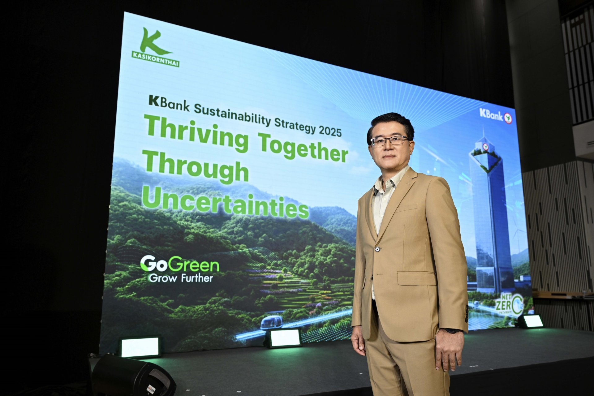 ธนาคารได้ปรับเป้าหมายสินเชื่อและเงินลงทุนเพื่อความยั่งยืน เป็น 4-5 แสนล้านบาท ภายในปี 2573 (ค.ศ.2030) เพื่อเร่งการเปลี่ยนผ่านสู่เศรษฐกิจคาร์บอนต่ำอย่างมีประสิทธิภาพ ตลอดจนมุ่งมั่นพัฒนา Beyond Banking Solution เพื่อส่งมอบ Climate Solution ที่จะช่วยเสริมสร้างศักยภาพให้แก่ลูกค้า และส่งเสริมการสร้าง Carbon Ecosystem ที่ครอบคลุมทุกมิติของการแก้ไขปัญหาสภาพภูมิอากาศ ได้แก่ การเป็นที่ปรึกษาด้านความยั่งยืนและการลดการปล่อยก๊าซเรือนกระจกสำหรับภาคธุรกิจที่ต้องการปรับตัว พร้อมพัฒนาเครื่องมือ KClimate1.5 สำหรับการจัดทำบัญชีก๊าซเรือนกระจก การจัดตั้ง Creative Climate Research Center เป็นศูนย์กลางองค์ความรู้และความร่วมมือเพื่อรับมือกับปัญหาโลกร้อน การริเริ่มโครงการต่างๆ เพื่อสร้าง Carbon Ecosystem ในสังคม เช่น Watts Up แพลตฟอร์มสำหรับรถมอเตอร์ไซค์ไฟฟ้า แพลตฟอร์ม Green Pass สำหรับการขอใบรับรอง RECs และแพลตฟอร์ม K-GreenSpace ที่ช่วยให้ลูกค้าเข้าถึงโซลูชัน Green Living ได้ง่ายขึ้น