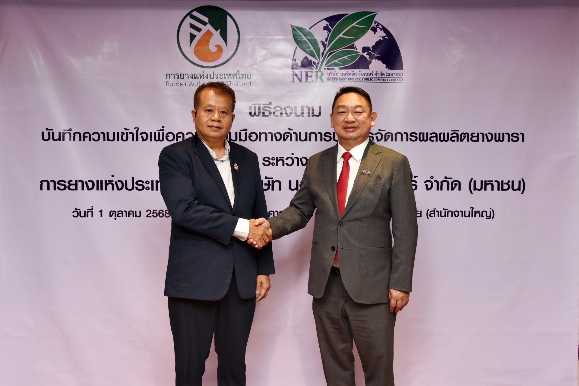 นายชูวิทย์ จึงธนสมบูรณ์ ประธานเจ้าหน้าที่บริหาร บริษัท นอร์ทอีส รับเบอร์ จำกัด (มหาชน) หรือ NER ผู้ดำเนินธุรกิจผลิตและจำหน่าย ยางแผ่นรมควัน ยางแท่ง ยางผสม และสินค้าปลายน้ำแผ่นยางพาราปูพื้นคุณภาพสูง เพื่อจำหน่ายไปยังผู้ผลิตในอุตสาหกรรมยานยนต์ กลุ่มผู้ค้าคนกลาง ทั้งในประเทศและต่างประเทศเปิดเผยว่า บริษัทฯ ได้ร่วมลงนามบันทึกความเข้าใจ (MOU) กับการยางแห่งประเทศไทย (กยท.) เพื่อความร่วมมือด้านการบริหารจัดการผลผลิตยางพารา โดยมี นายเพิก เลิศวังพง รักษาการแทนผู้ว่าการการยางแห่งประเทศไทย ร่วมลงนาม เพื่อร่วมกันสร้างโอกาสทางเศรษฐกิจและรายได้ที่มั่นคงให้เกษตรกรไทยในระยะยาว พร้อมสนับสนุนการพัฒนาอุตสาหกรรมยางพาราอย่างยั่งยืน ณ การยางแห่งประเทศไทย (สำนักงานใหญ่) กรุงเทพมหานคร