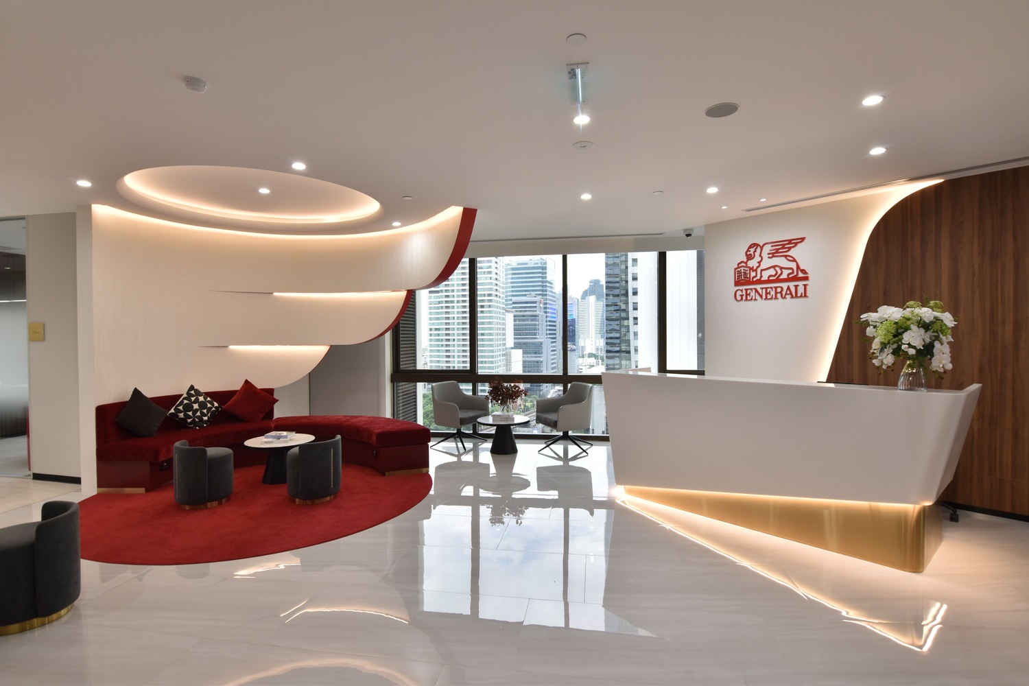 การออกแบบใหม่ของเจนเนอราลี่ เซ็นเตอร์ สะท้อนแนวคิด Winged Forward ที่ได้รับแรงบันดาลใจจากสัญลักษณ์ปีกสิงโตอันโดดเด่นของเจนเนอราลี่ แนวคิดนี้แสดงถึงวิสัยทัศน์ที่มุ่งสู่อนาคตและความมุ่งมั่นในการพัฒนาตัวแทนอย่างรอบด้าน ภายในศูนย์ประกอบด้วย 3 โซนหลัก ได้แก่ Co-Working Zone พื้นที่ทำงานร่วมที่ยืดหยุ่น เพื่อส่งเสริมการทำงานร่วมกันและแลกเปลี่ยนความคิด Hybrid Training Hub ศูนย์ฝึกอบรมที่ทันสมัย รองรับทั้งการเรียนรู้แบบออนไซต์และออนไลน์ เพื่อการพัฒนาวิชาชีพอย่างต่อเนื่อง Experience Lounge พื้นที่ต้อนรับสำหรับการสร้างเครือข่าย แบ่งปันความรู้ รวมถึงพบปะลูกค้าในบรรยากาศผ่อนคลายและ เอ็กซ์คลูซีฟ