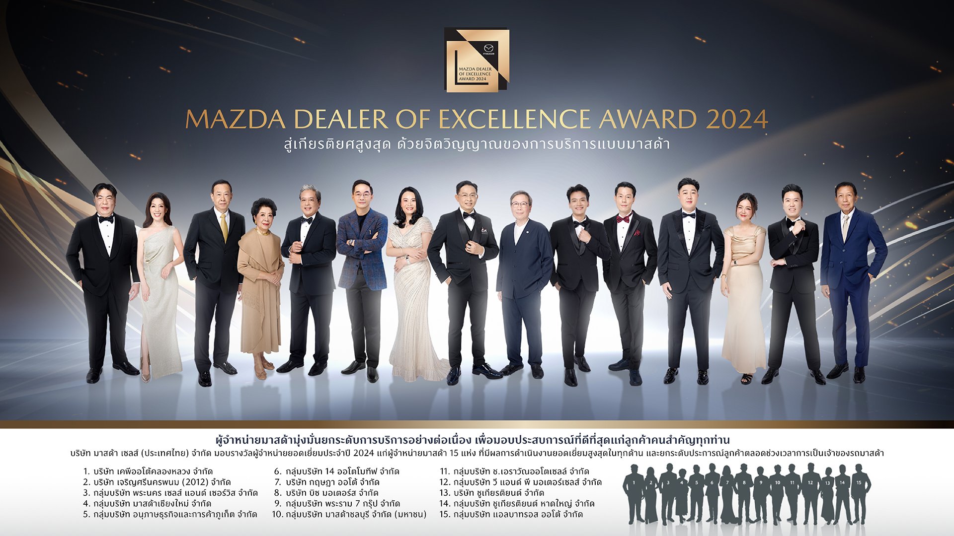 มาสด้าจัดงาน Mazda Dealer of Excellence Awards 2024 เพื่อเชิดชูความสำเร็จของผู้จำหน่ายที่มีผลการดำเนินงานยอดเยี่ยมตลอดปี 2567 ภายใต้ธีม Driven to Distinction ขับเคลื่อนสู่ความเป็นหนึ่ง ด้วยความแตกต่างเหนือระดับ ถ่ายทอดความเป็นเลิศอันเกิดจากการร่วมแรงร่วมใจเป็นหนึ่งเดียวกัน ตั้งมั่นด้วยปณิธานอันแน่วแน่คือการส่งมอบประสบการณ์ที่ดีที่สุดให้กับลูกค้า พร้อมมอบรางวัลทีมงานฝ่ายขายและฝ่ายบริการยอดเยี่ยมแห่งปี หรือ Mazda Guild Sales and Servies Awards 2024 ให้กับทีมงานของผู้จำหน่ายที่มีผลการดำเนินงานดีที่สุดตลอดปีที่ผ่านมา เพื่อสร้างขวัญกำลังใจ และแทนคำขอบคุณที่เป็นกำลังสำคัญในการขับเคลื่อนธุรกิจ ด้วยการส่งมอบการบริการที่เป็นเลิศให้กับลูกค้ามาสด้าในประเทศไทย โดยงานฯ จัดขึ้นที่โรงแรม โฟร์ซีซั่นส์ ริมแม่น้ำเจ้าพระยา กรุงเทพฯ เมื่อเร็ว ๆ นี้ โดยมีผู้บริหารจากมาสด้า เซลส์ ประเทศไทย ผู้จำหน่ายมาสด้าทั่วประเทศ และทีมงานของผู้จำหน่ายเข้าร่วมงาน เพื่อร่วมแสดงความยินดี ภายใต้บรรยากาศที่เต็มไปด้วยความอบอุ่นและเป็นกันเอง