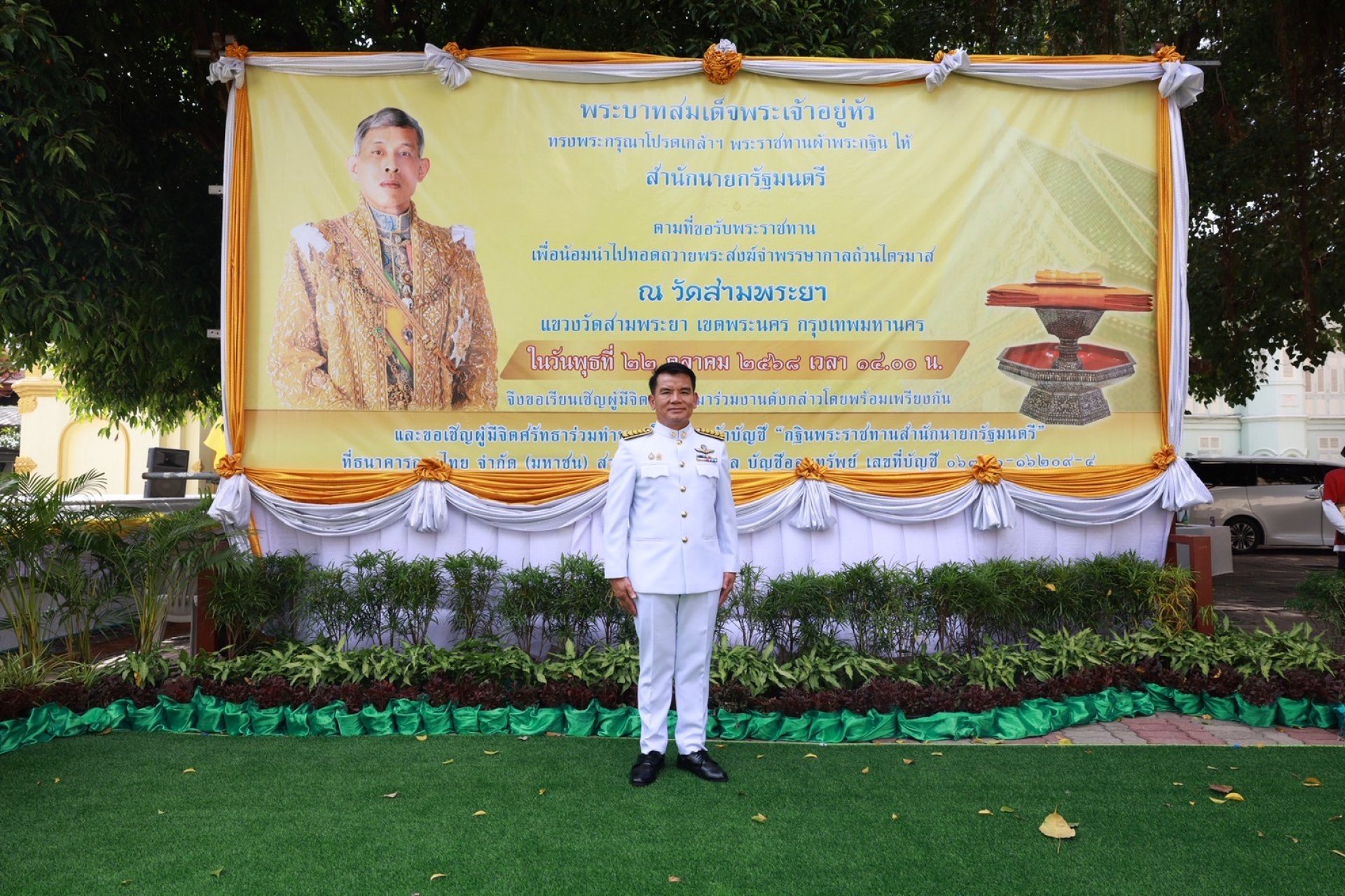 นายสุวินัย ไทยลาวัลย์ ผู้ช่วยผู้จัดการธนาคารเพื่อการเกษตรและสหกรณ์การเกษตร (ธ.ก.ส.) เข้าร่วมงานกฐินพระราชทานสำนักนายกรัฐมนตรี ประจำปี 2568 ณ วัดสามพระยา แขวงวัดสามพระยา เขตพระนคร กรุงเทพฯ เพื่อร่วมเป็นส่วนหนึ่งในการสืบทอดประเพณีสำคัญทางพระพุทธศาสนา โดย ธ.ก.ส. ได้ร่วมทำบุญถวายปัจจัยสมทบองค์ผ้าพระกฐินพระราชทานสำนักนายกรัฐมนตรี เพื่อสมทบทุนในการบูรณะซ่อมแซม รวมถึงบูรณปฏิสังขรณ์เสนาสนะและสาธารณูปโภคภายในวัด อำนวยความสะดวกให้กับพระภิกษุ สามเณร รวมถึงประชาชนผู้มีจิตศรัทธาในการทำกิจกรรมทางศาสนาต่อไป เมื่อวันที่ 22 ตุลาคม 2568