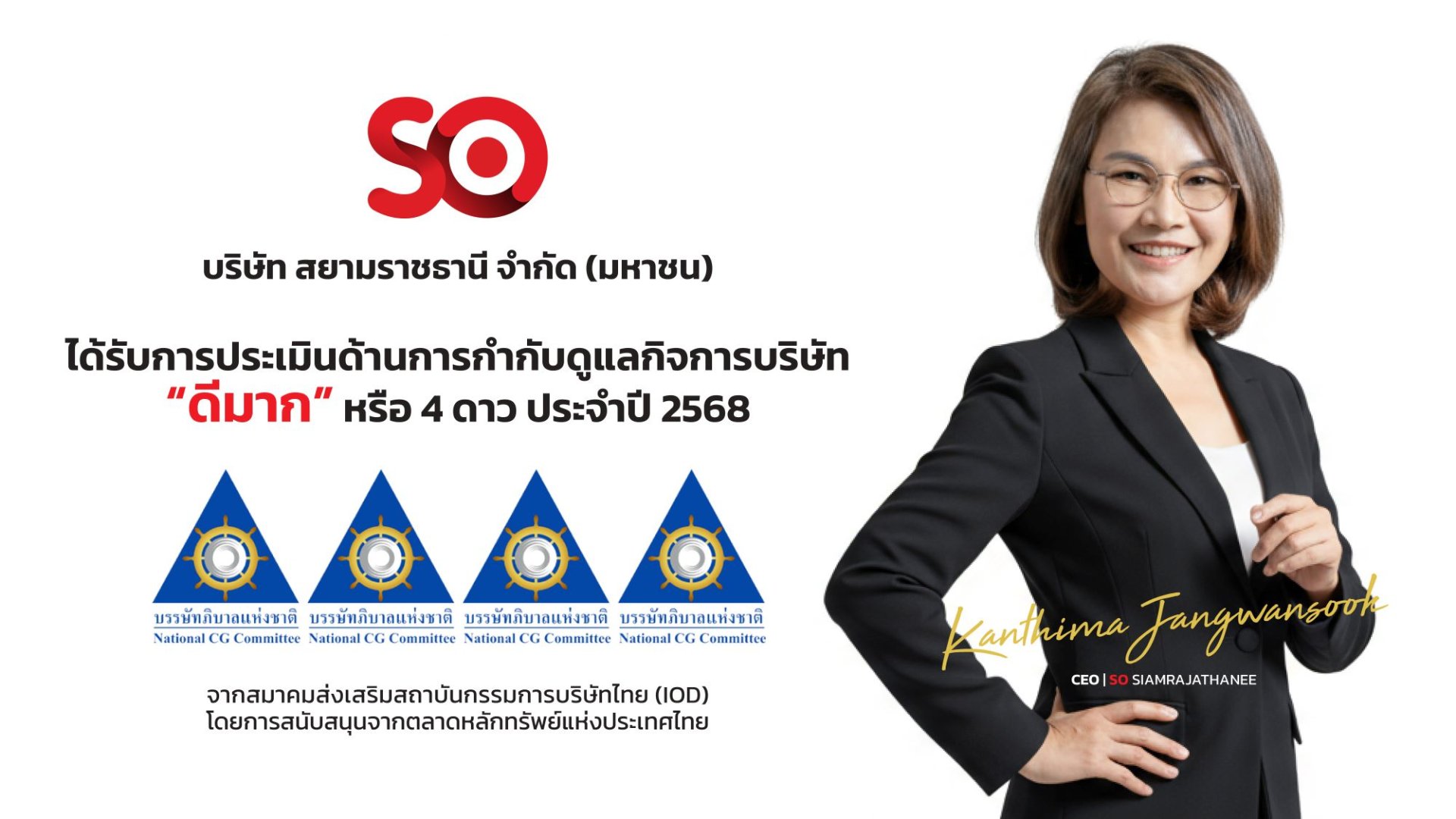 SO คว้า 4 ดาว CGR ปี 2568 สะท้อนธรรมาภิบาลโปร่งใส มุ่งสู่การเติบโตอย่างยั่งยืน