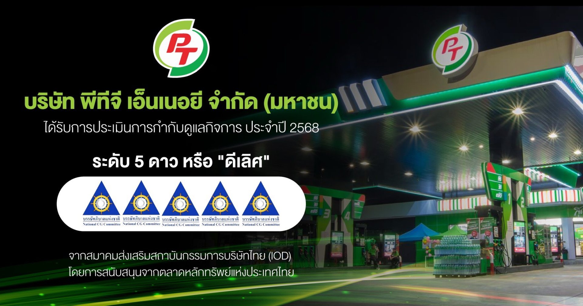 PTG สุดปลื้ม! คว้า CGR ระดับ 5 ดาว ดีเลิศ ตอกย้ำองค์กรโปร่งใส ธรรมาภิบาลครบทุกมิติ มุ่งสู่การเติบโตยั่งยืน เคียงข้างนักลงทุนสังคมไทย