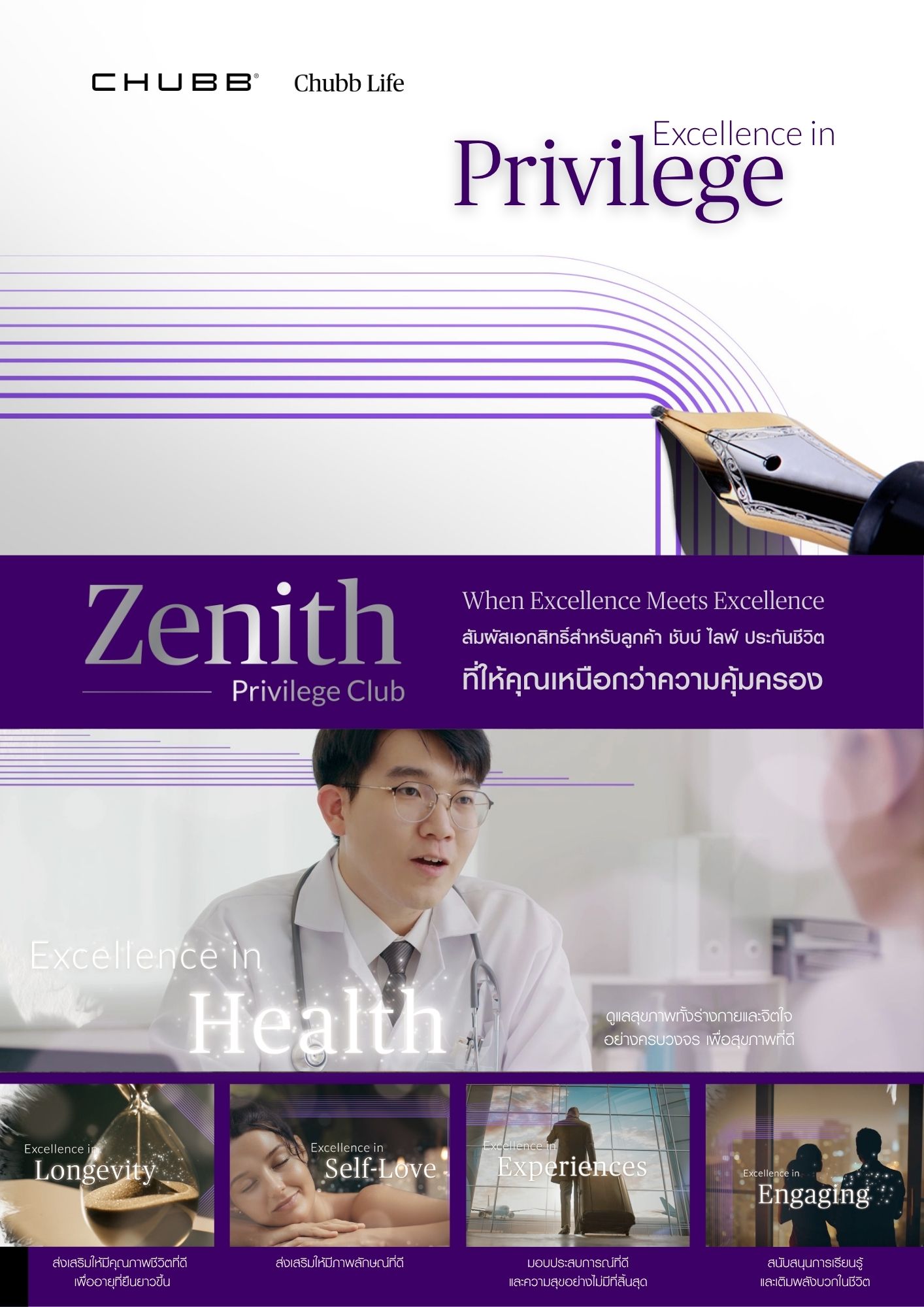ชับบ์ ไลฟ์ ประกันชีวิต เปิดตัวโปรแกรมสิทธิพิเศษ “Zenith Privilege Club” ความเป็นเลิศที่มาบรรจบกัน พร้อมเติมเต็มลูกค้าในทุกมิติของชีวิต