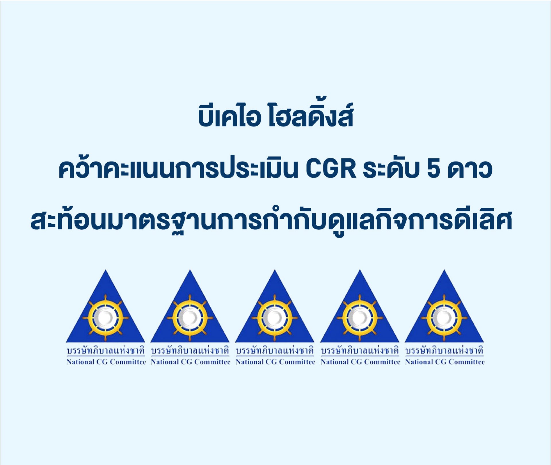 บีเคไอ โฮลดิ้งส์ คว้าคะแนนการประเมิน CGR ระดับ 5 ดาว สะท้อนมาตรฐานการกำกับดูแลกิจการดีเลิศ
