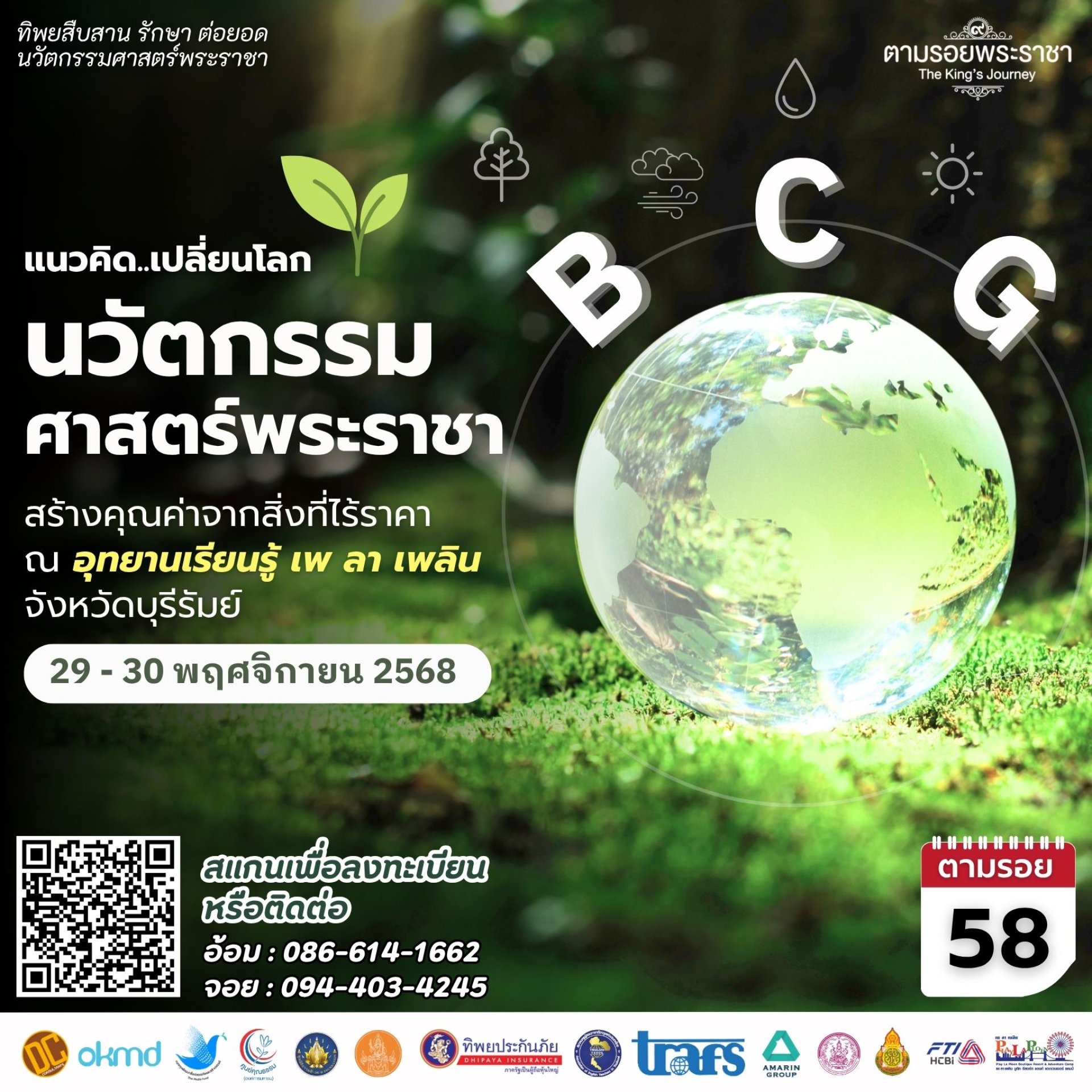 เชิญร่วมโครงการทิพยสืบสาน รักษา ต่อยอด นวัตกรรมศาสตร์พระราชา ครั้งที่ 58 ในวันที่ 29 30 พฤศจิกายน 2568 เปิดรับสมัครตั้งแต่วันนี้เป็นต้นไป สอบถามข้อมูลเพิ่มเติมที่ คุณพุทธชาด โทรศัพท์ 086 614 1662 FB : ตามรอยพระราชา-The Kings Journey