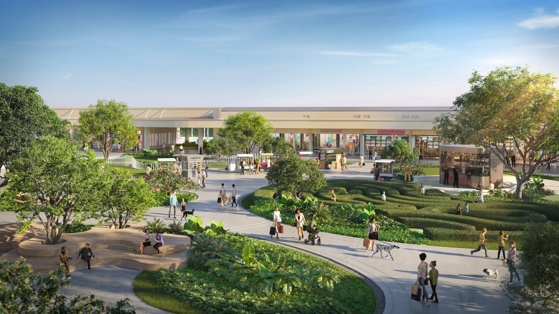 ในส่วนของ Maze Garden & Green Space ได้รับแรงบันดาลใจจากสวนยุโรปที่ผสานความสนุกและความร่มรื่นเข้าด้วยกัน Maze Garden หรือสวนเขาวงกตขนาดย่อม มอบประสบการณ์เดินเล่นท่ามกลางธรรมชาติอย่างเพลิดเพลิน พื้นที่โดยรวมรายล้อมด้วยต้นไม้ใหญ่และทางเดินร่มรื่น เชื่อมต่อกับโซนร้านอาหารและ Lifestyle Zone ของโครงการ เป็นอีกมุมพักผ่อนที่เปิดรับผู้คนทุกเพศทุกวัย