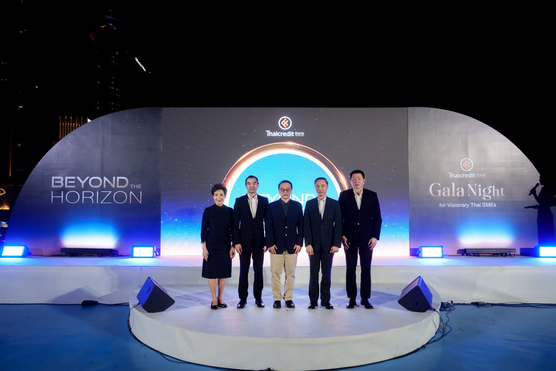 ธนาคารไทยเครดิต จำกัด (มหาชน) เนรมิตดาดฟ้าอาคารริมแม่น้ำเจ้าพระยา จัดงานเลี้ยง Beyond the Horizon Gala Night for Visionary Thai SMEs ในค่ำคืนสุดพิเศษ เพื่อขอบคุณลูกค้าที่เชื่อมั่นและเลือกใช้บริการสินเชื่อไมโครเอสเอ็มอีและเอสเอ็มอีของธนาคารฯ ด้วยดีเสมอมา พร้อมการบรรยายพิเศษ อนาคตเศรษฐกิจกับ SME ไทย โดย รศ.ดร.อนุสรณ์ ธรรมใจ คณบดีคณะเศรษฐศาสตร์ และผู้อำนวยการศูนย์วิจัยเศรษฐกิจดิจิทัล การลงทุนและการค้าระหว่างประเทศ มหาวิทยาลัยหอการค้าไทย ณ ริเวอร์ ซิตี้ แบงค็อก เมื่อวันที่ 15 พฤศจิกายน 2568 โดย นายวิญญู ไชยวรรณ รองประธานกรรมการ และประธานคณะเจ้าหน้าที่บริหาร นางสาวกฤษณา อร่ามกุลชัย กรรมการ นายรอยย์ ออกุสตินัส กุนารา ประธานเจ้าหน้าที่บริหาร และนายนาธัส กฤตวรานนท์ รองกรรมการผู้จัดการ กลุ่มบริหารธุรกิจไมโครเอสเอ็มอี ธนาคารไทยเครดิต จำกัด (มหาชน) ให้การต้อนรับ