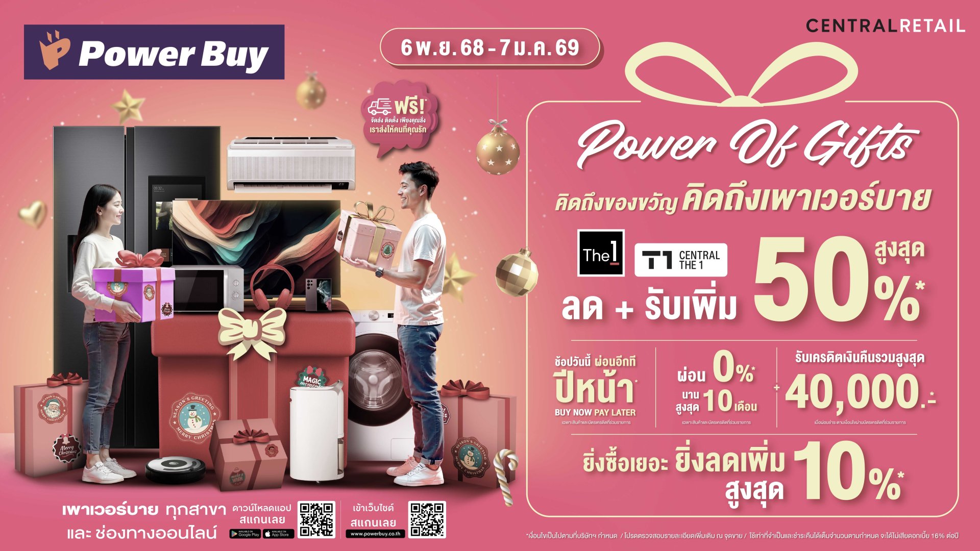 เพาเวอร์บาย ร่วมมอบความสุขตลอดเทศกาลปีใหม่นี้ด้วยแคมเปญ Power of Gift ยกระดับประสบการณ์ช้อปปิ้งที่สะดวกสบายและครบทุกความต้องการ ผ่านทุกช่องทาง Omnichannel ลูกค้าสามารถเลือกสรรของขวัญสุดพิเศษ ตั้งแต่วันนี้ 7 มกราคม 2569 ที่เพาเวอร์บายทุกสาขาทั่วประเทศ รวมถึงช่องทางออนไลน์ครบวงจร ไม่ว่าจะเป็นเว็บไซต์ www.powerbuy.co.th, แอป Power Buy, Call & Shop 1324 กด 2, Line @powerbuy และ Facebook Official