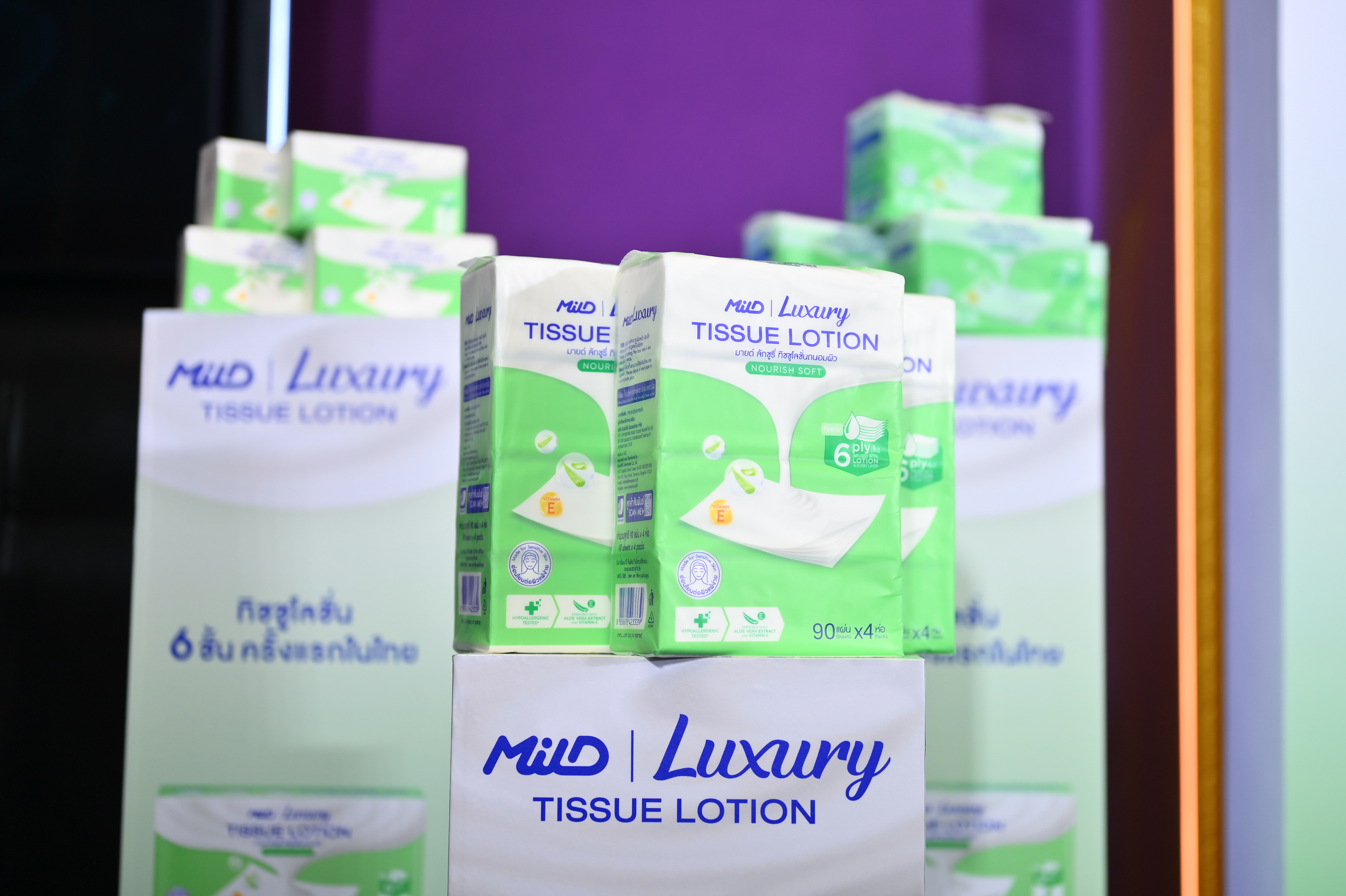 การเปิดตัวครั้งนี้จัดขึ้นภายใต้คอนเซ็ปต์ Love at First Touch รักตั้งแต่สัมผัสแรก เพื่อสะท้อนถึงประสบการณ์เฉพาะตัวของทิชชู่โลชั่น Mild Luxury ซึ่งโดดเด่นด้วย ความหนานุ่ม 6 ชั้น ผสาน โลชั่น อโลเวร่า และวิตามิน E ทุกชั้นของเนื้อกระดาษ เพื่อช่วยถนอมผิวและลดการเสียดสี เพื่อช่วยลดการเสียดสีและถนอมผิว พร้อมใช้ เทคโนโลยี Air Dry Technology เพื่อให้เนื้อทิชชู่คงความแห้ง ความแห้งเบา สะอาด นุ่มลื่น และให้ความรู้สึกสบายผิว ไม่เหนียว ไม่ระคายเคือง เหนือกว่าทิชชู่ทั่วไปในท้องตลาด นอกจากนี้ ผลิตภัณฑ์ยังผ่านมาตรฐานด้านความอ่อนโยนอย่างเคร่งครัด โดยเป็น สูตร Hypoallergenic และผ่านการทดสอบโดยผู้เชี่ยวชาญด้านผิวหนัง (Dermatologist-Tested) เพื่อให้มั่นใจว่าสามารถใช้ได้กับทุกสภาพผิว รวมถึงผู้ที่มีผิวบอบบางแพ้ง่ายเป็นพิเศษ สะท้อนความใส่ใจของแบรนด์ในการพัฒนาผลิตภัณฑ์ที่ไม่เพียงนุ่ม แต่ต้องปลอดภัย และอ่อนโยนต่อผิวอย่างแท้จริงเพื่อรองรับความต้องการของผู้บริโภคที่หลากหลาย Mild Luxury ยังเปิดตัวผลิตภัณฑ์ทั้งหมด 3 รุ่น ได้แก่