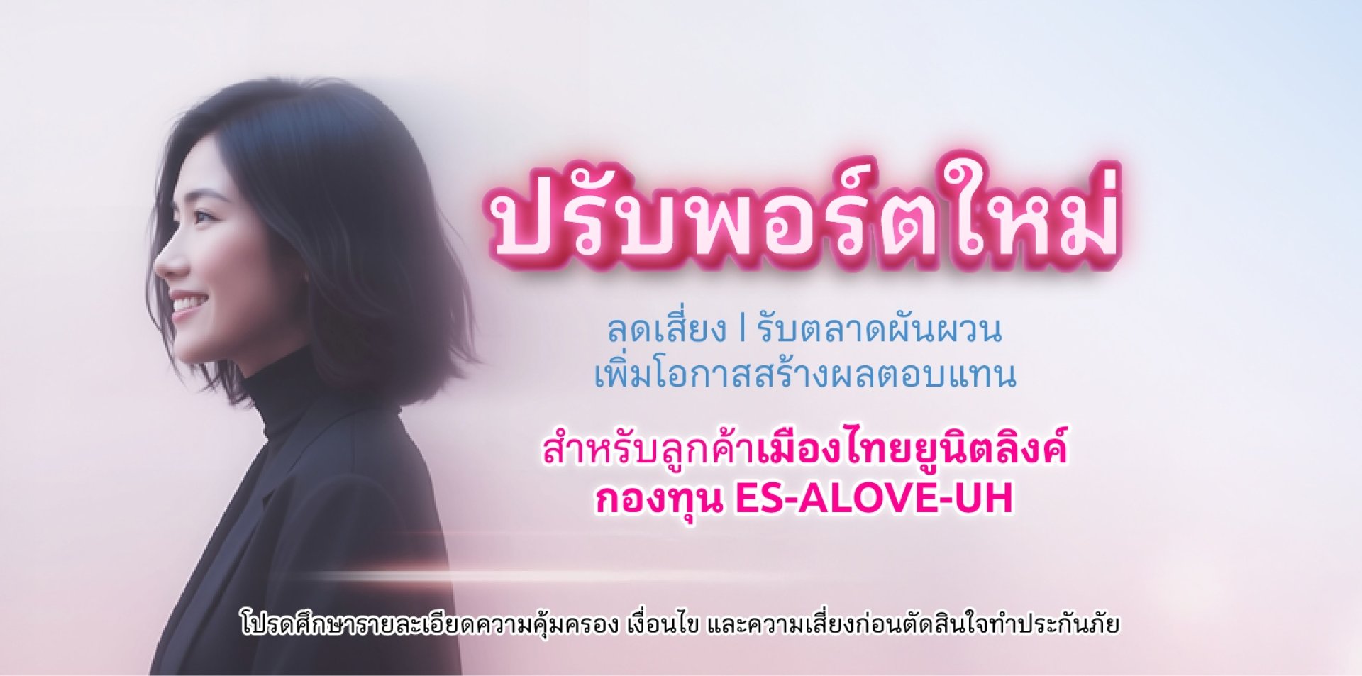 เมืองไทยประกันชีวิต ปรับพอร์ตแนะนำการลงทุนยูนิตลิงค์ส่งท้ายปี 2568 พร้อมเพิ่มกองทุนใหม่ ES-ALOVE-UH สร้างโอกาสรับผลตอบแทนช่วงตลาดผันผวน สามารถจัดพอร์ตกองทุนรวมได้หลากหลาย ตอบโจทย์ความต้องการของลูกค้าในทุกระดับความเสี่ยง และช่วยให้การวางแผนสร้างผลตอบแทนระยะยาวมีเสถียรภาพเพิ่มมากขึ้น